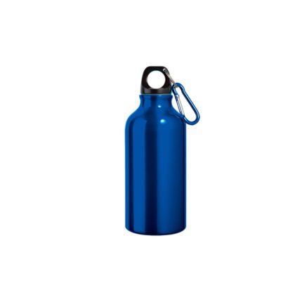 Botella de aluminio con tapa de aro y mosquetón, para un agarre más seguro. BPA free. Capacidad de 400 ml.