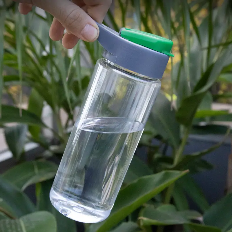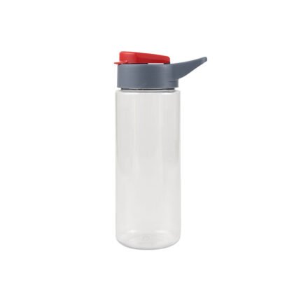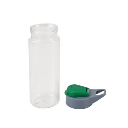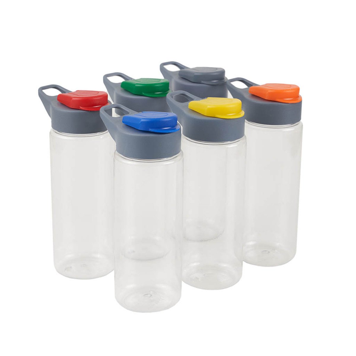 Botella transparente reutilizable de PET con tapa de Polipropileno.