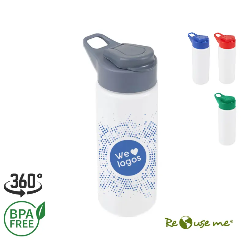 Botella reutilizable de PET con tapa de Polipropileno.