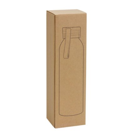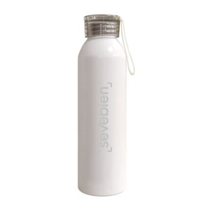 Ø 6,6 x 23,2 cm. Capacidad 600 ml. Aluminio. Botella de aluminio con cuerpo color. Tapa transparente con tira de silicona (de 8 cm) del mismo color que el cuerpo de la botella. Cuerpo de botella recubierto con pintura especial para facilitar la impresión del producto. Presentación en caja de regalo Kraft.