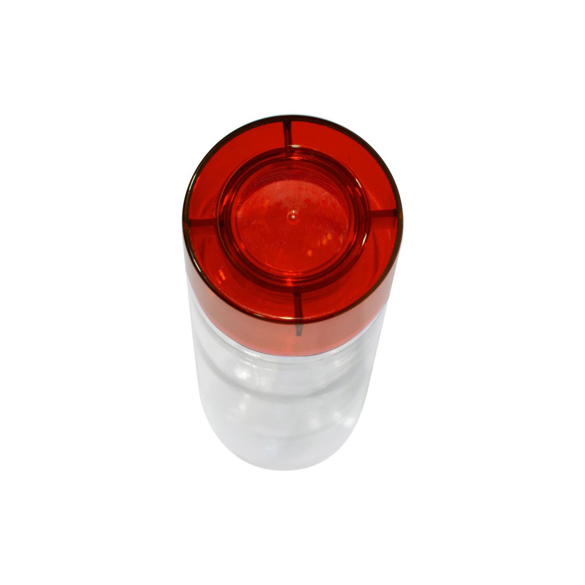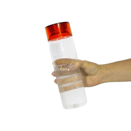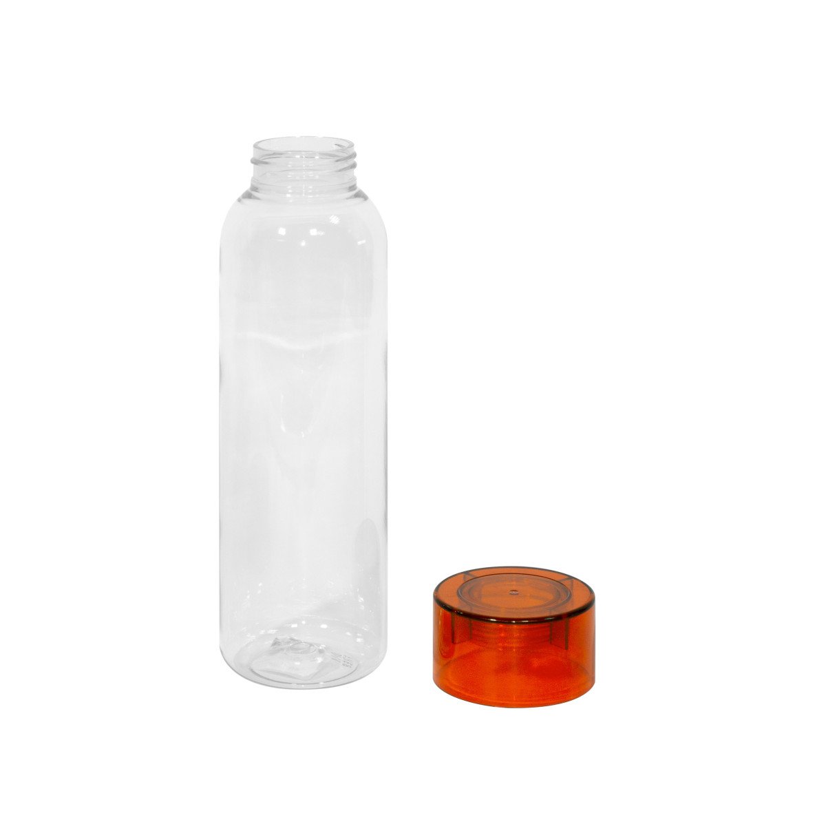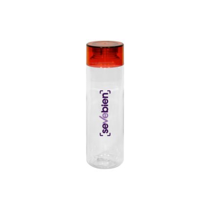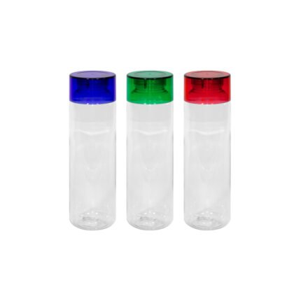 Botella de plástico transparente con tapa a rosca plástica.