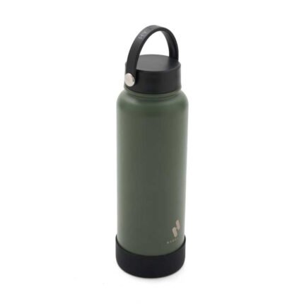 Botella isotérmica de 1000 ml, con doble pared de acero inoxidable 18/8, pintura en polvo y base de silicona antideslizante, mantiene tus bebidas frías durante 12 horas y calientes durante 8 horas.