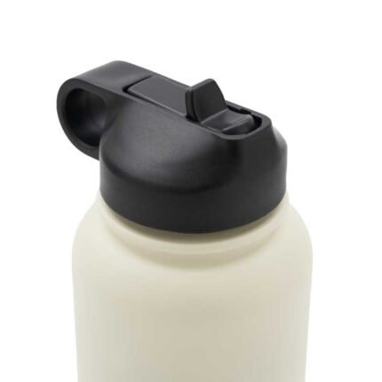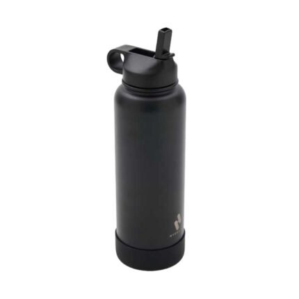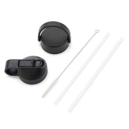 Cuenta con 2 tapas negras a rosca, para que utilices la que te resulte más cómoda: con pico y anillo para facilitar el agarre, y con manija para transportarla. Incluye 2 sorbetes y cepillo limpiador.