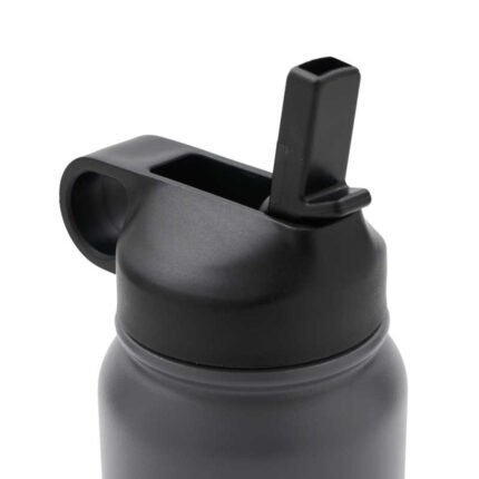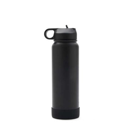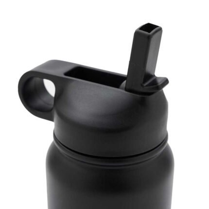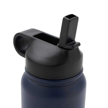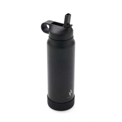 Cuenta con 2 tapas negras a rosca, para que utilices la que te resulte más cómoda: con pico y anillo para facilitar el agarre, y con manija para transportarla. Incluye 2 sorbetes y cepillo limpiador.