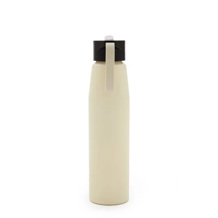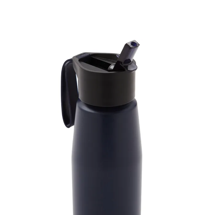 Botella de aluminio con tapa de PP negra a rosca con pico de PS y sorbete PE. Cuenta con una correa de silicona a tono con el color elegido para facilitar el agarre. Capacidad de 700 ml. Ideal para tus actividades deportivas y al aire libre. Con impacto positivo en el medio ambiente, esta botella reutilizable te ayuda a reducir el consumo de plástico de un solo uso. Producto libre de BPA. Tahg