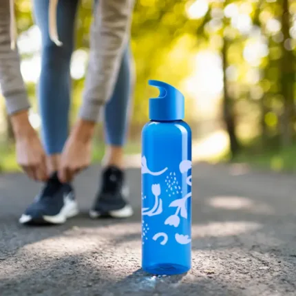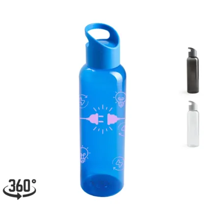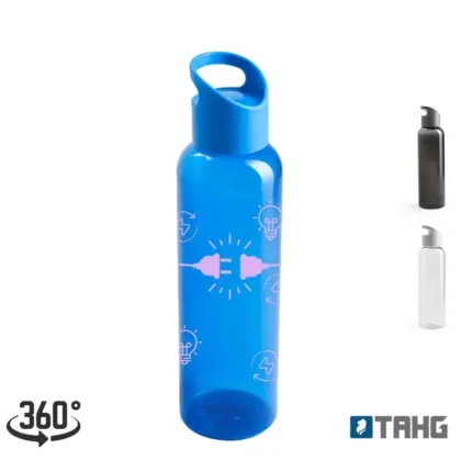 Botella hecho de PETG y PP. Ideal para ir a hacer deporte. Cuenta con un agarre en la tapa, para facilitar su transporte.