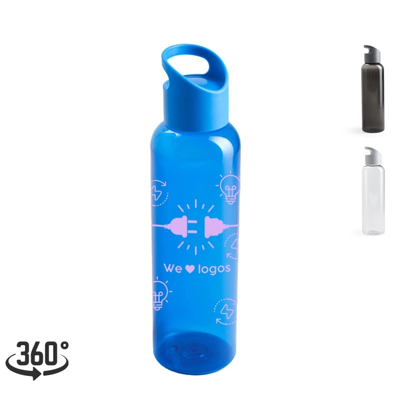 Botella hecho de PETG y PP. Ideal para ir a hacer deporte. Cuenta con un agarre en la tapa, para facilitar su transporte.