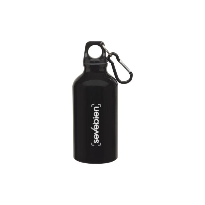 Aluminio. Ø 6,5 x 17,5 cm. Capacidad 400 ml. Botella de aluminio con tapa de rosca plástica y gancho metálico.Aprobado por INAL