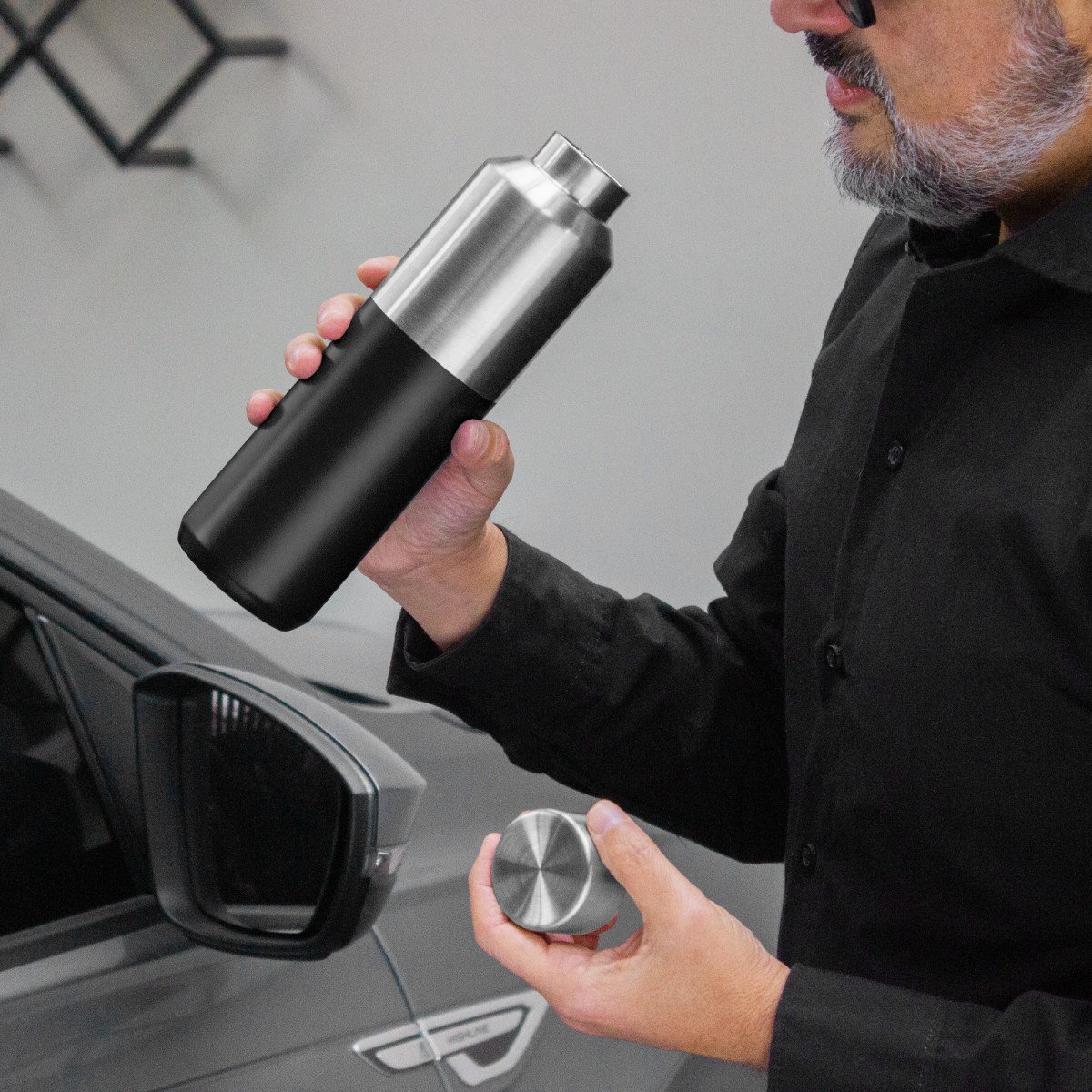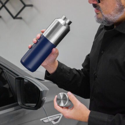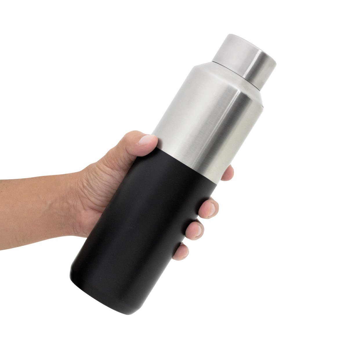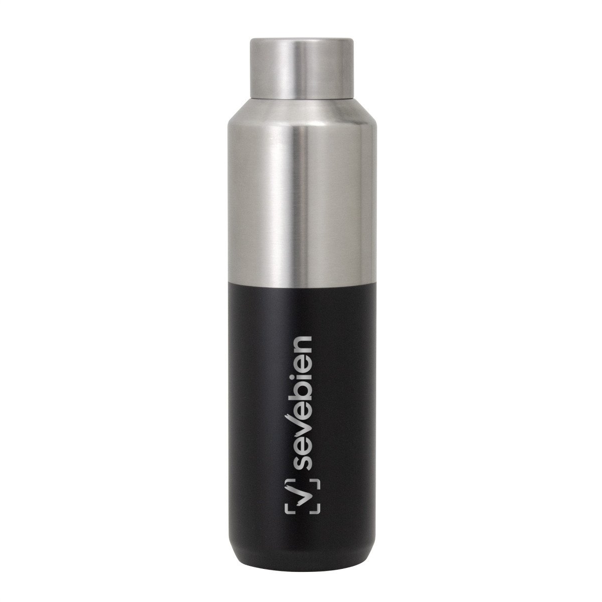 Aislamiento Superior para Bebidas Calientes y Frías.Botella doble pared, sellada al vacío. Interior de acero 304 y exterior de acero 201. Tapa a rosca de acero 201 con anillo de silicona. Pintura acabado mate en parte inferior. Mantiene hasta 8 hs la temperatura de las bebidas calientes y hasta 12 hs la de las bebidas frías.Medidas: Ø 7 cm x 24,5 cm.