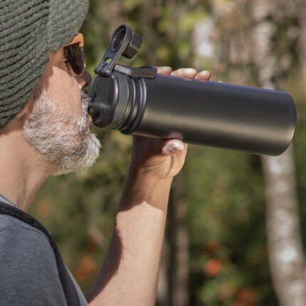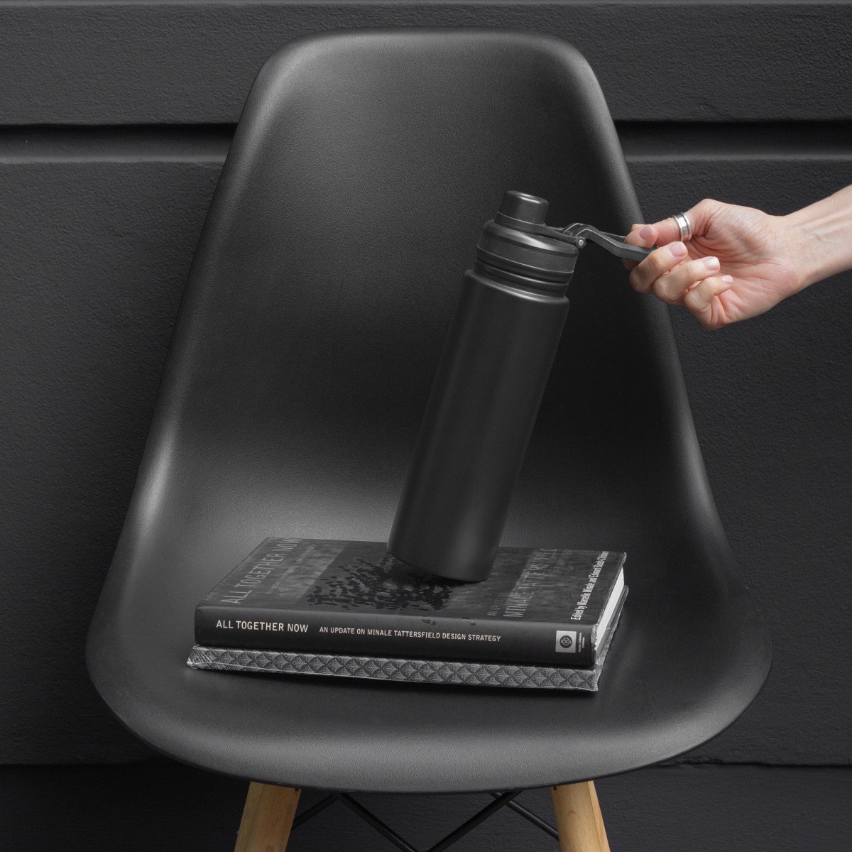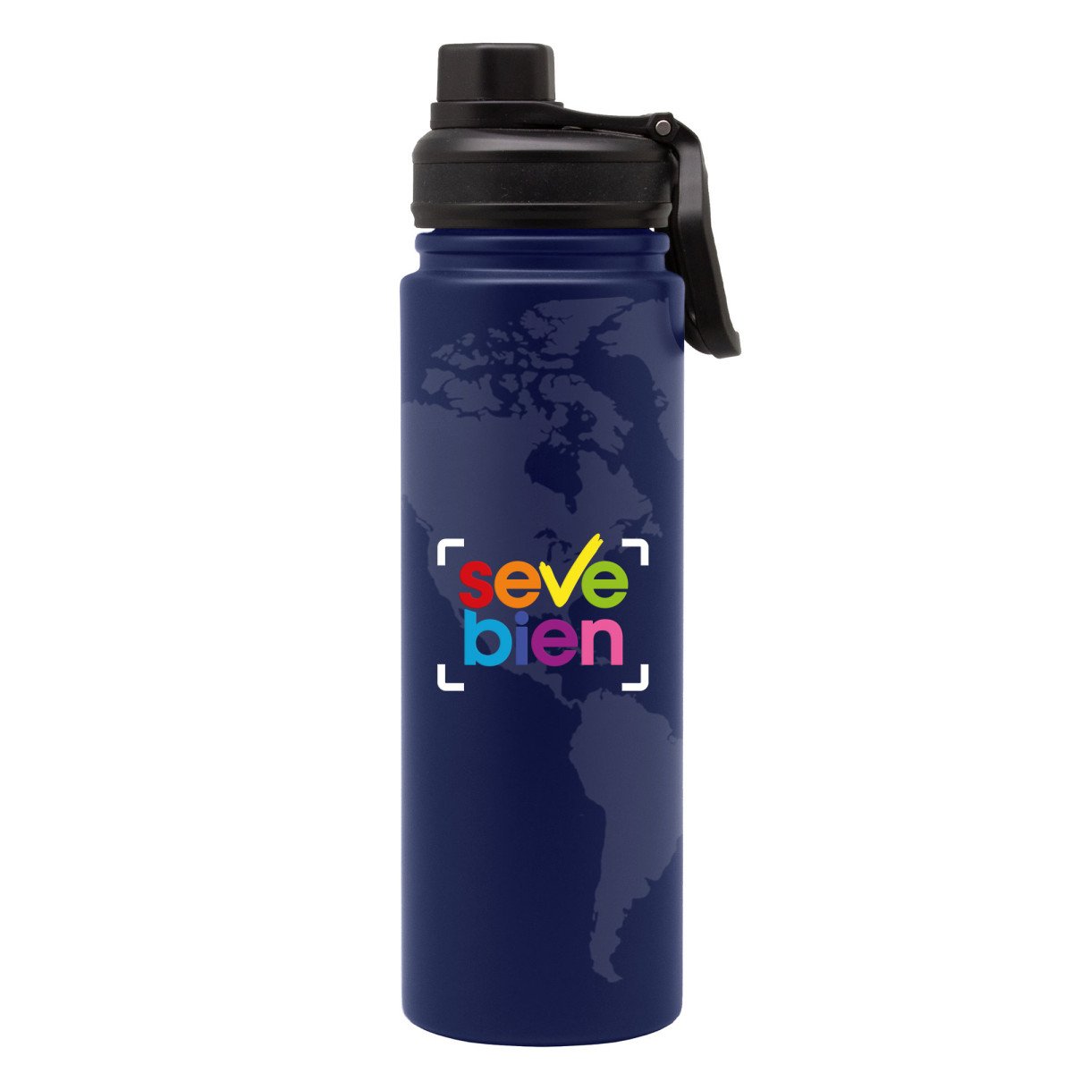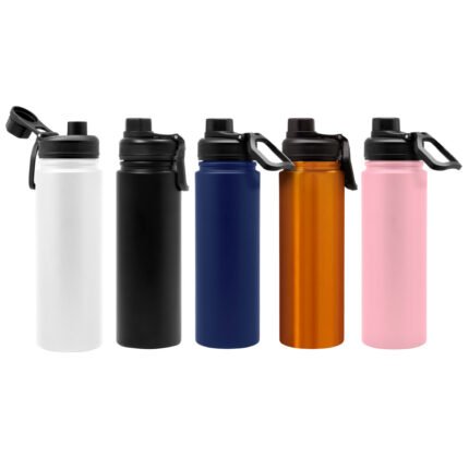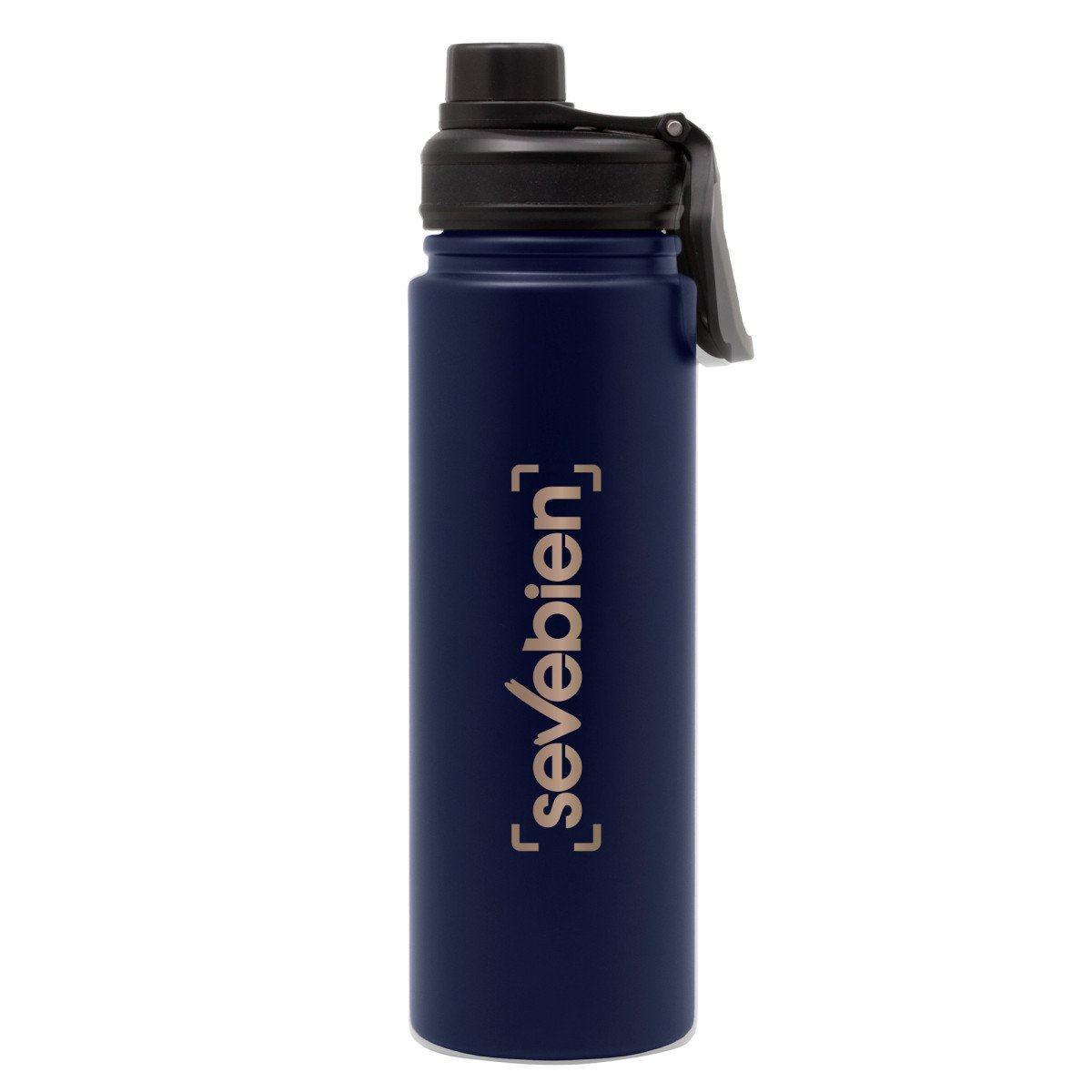 Mantén tu bebida en la temperatura idealBotella doble pared, sellada al vacío. Interior en acero 304 y exterior en acero 201. Tapa con anillo de silicona, boquilla con cierre a rosca antiderrame y manija plástica para su agarre. Mantiene hasta 12 hs la temperatura de las bebidas calientes y 24 hs de las bebidas frías. Medidas: Ø 7,5 x 26 cm.