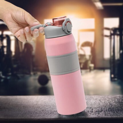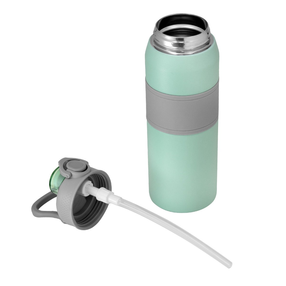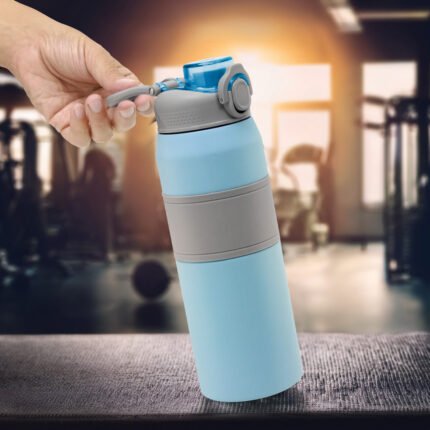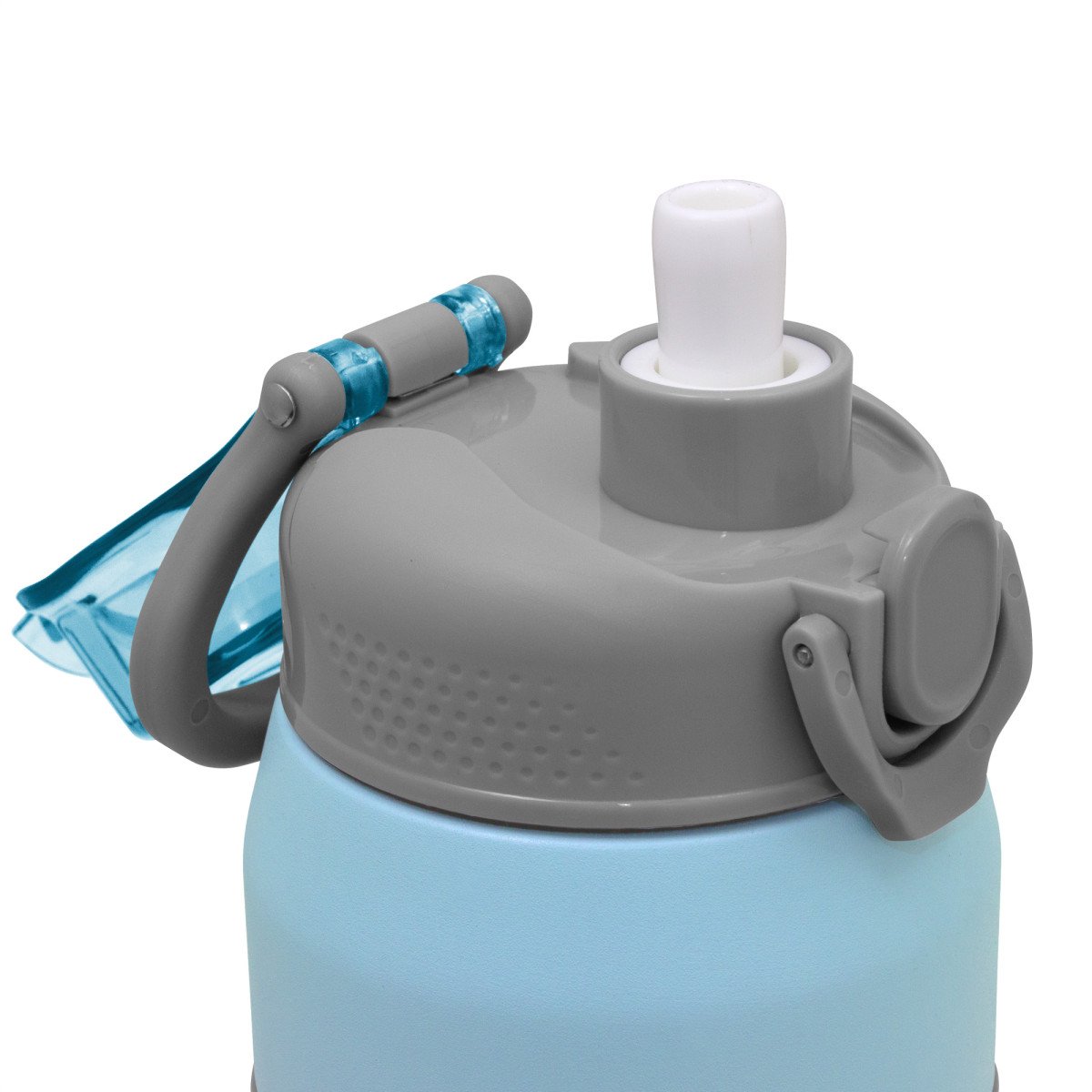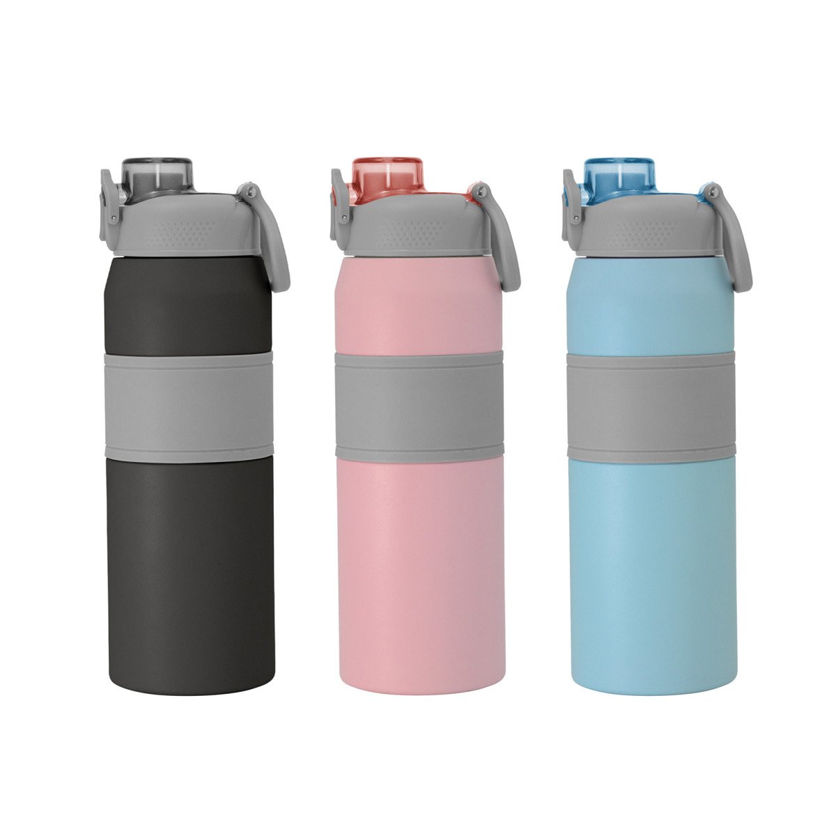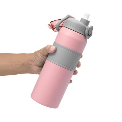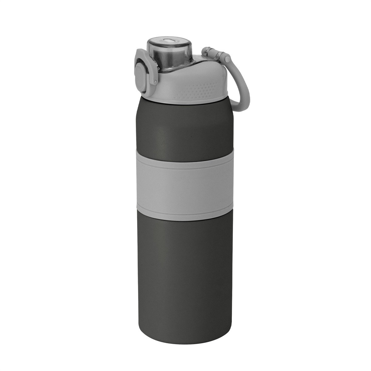 Hidratación a otro nivel.Botella deportiva con doble pared, sellada al vacío. Interior de acero 304 y exterior de acero 201. Pintura powder coat (pintura más duradera y resistente a la corrosión y el paso del tiempo). Tapa plástica a rosca en color gris con anillo de silicona y manija plástica para su agarre, combinada con tapa rebatible en colores translucidos a juego con el color de la botella. Boquilla con sorbete incluido. Grip de silicona color gris para mejor agarre. Mantiene alrededor de 8 hs la temperatura de las bebidas calientes y frías. Medidas: Ø 8 cm x 25 cm.