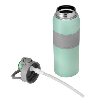 Hidratación a otro nivel.Botella deportiva con doble pared, sellada al vacío. Interior de acero 304 y exterior de acero 201. Pintura powder coat (pintura más duradera y resistente a la corrosión y el paso del tiempo). Tapa plástica a rosca en color gris con anillo de silicona y manija plástica para su agarre, combinada con tapa rebatible en colores translucidos a juego con el color de la botella. Boquilla con sorbete incluido. Grip de silicona color gris para mejor agarre. Mantiene hasta 8 hs la temperatura de las bebidas calientes y hasta 12 hs la de las bebidas frías.Medidas: Ø 8 cm x 25 cm.