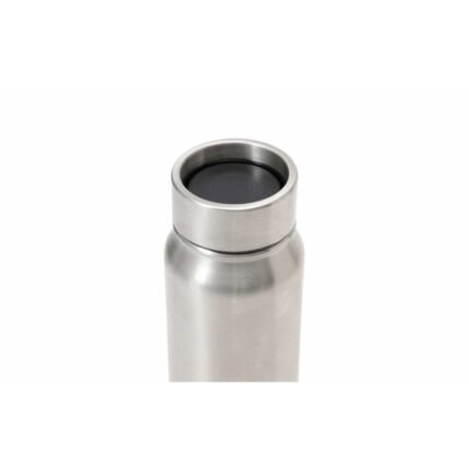 Botella térmica de doble pared de acero inoxidable, con aislamiento al vacío. Mantiente tanto bebidas calientes como frías durante horas (No beber agua caliente del borde de acero inoxidable). Tapa desmontable 360° con botón pulsador, a prueba de derrames. Capacidad: 500 ml.
