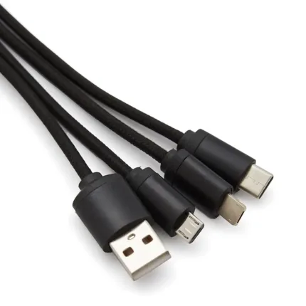 Cable 3 en 1 color negro, blanco o gris, con una longitud de 17 cm.