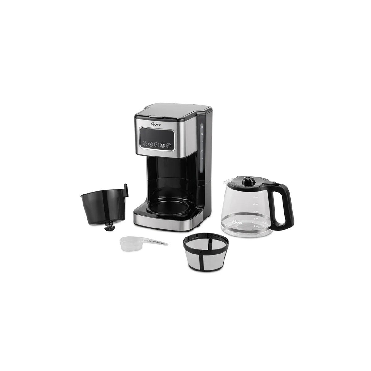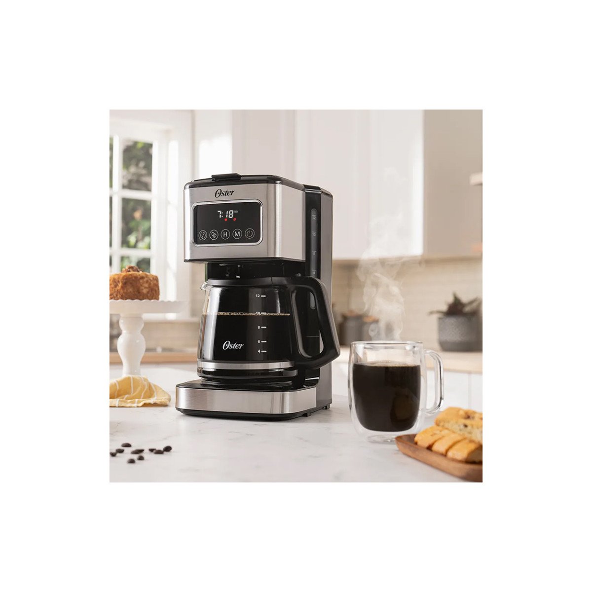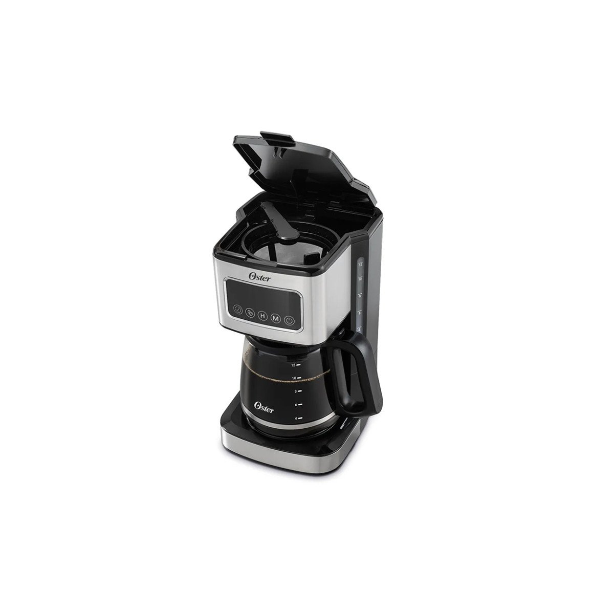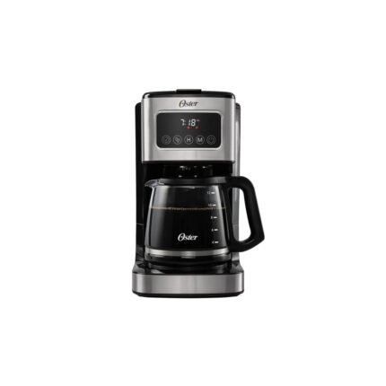 Cafetera programable de 12 tazas con pantalla táctil. Óptima funcionalidad para elegir la hora de preparación y el tipo de café, gracias a sus funciones programables.