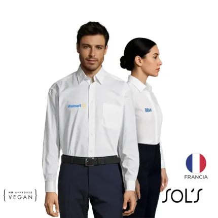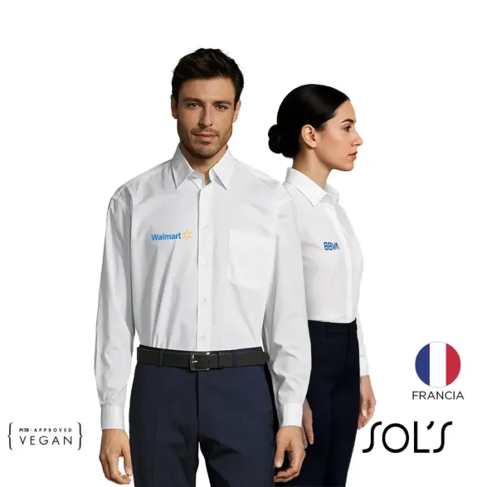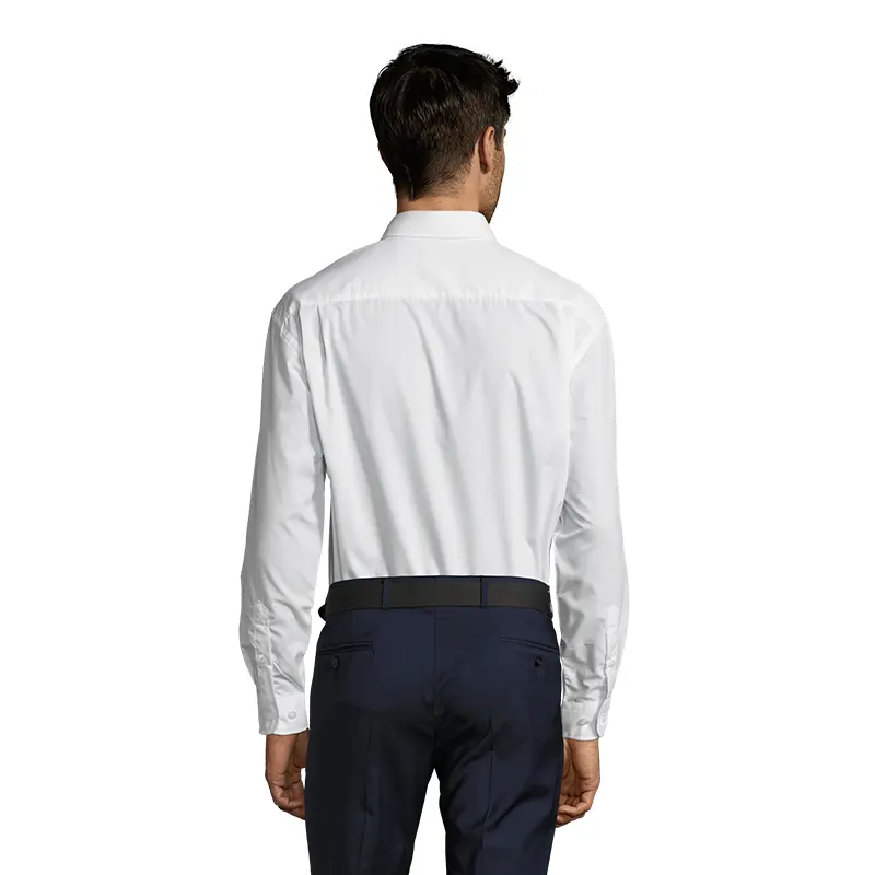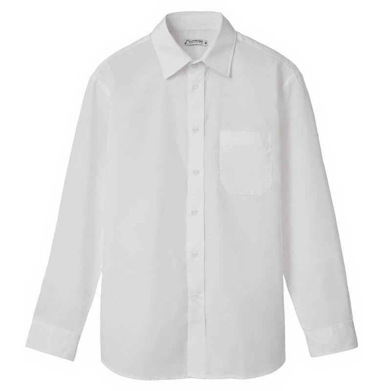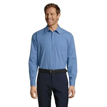 Camisa de manga larga de corte recto. Confeccionada en poplín (65% poliéster y 35% algodón), ideal para uso profesional.