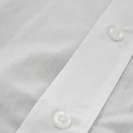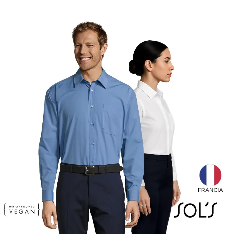 Cuenta con cuello reforzado, puños ajustables, bolsillo en el pecho izquierdo y dos cómodos pliegues en la espalda para mayor libertad de movimiento. Botones a tono. CERTIFICACIÓN: PETA-Approved Vegan