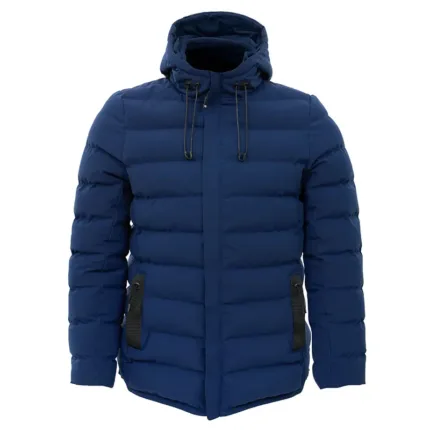 Campera con corte de hombre, confeccionada 100% en poliéster, con material resistente al viento y repelente al agua, que ofrece comodidad y protección en todo momento.