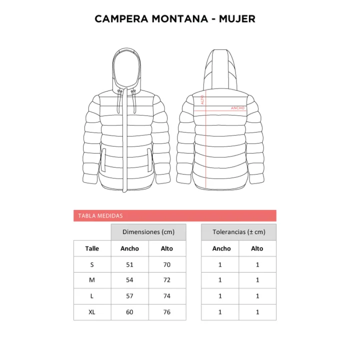 Campera con corte de mujer, confeccionada 100% en poliéster, con material resistente al viento y repelente al agua, que ofrece comodidad y protección en todo momento.