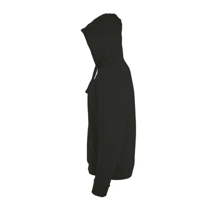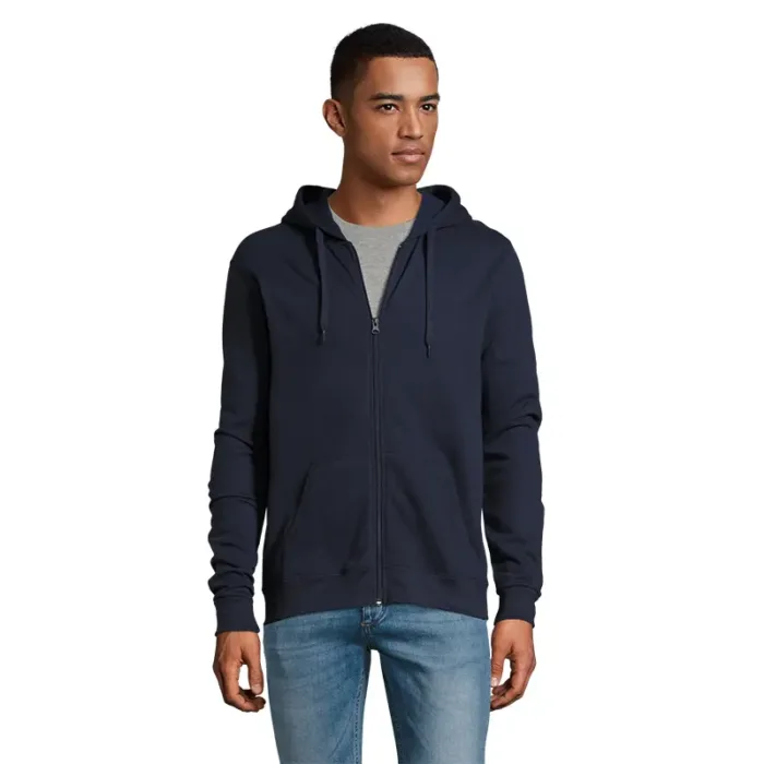 Campera de frisa 50% algodón y 50% poliéster de 260g con cierre y capucha unisex. CERTIFICACIÓN: PETA-Approved Vegan