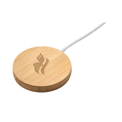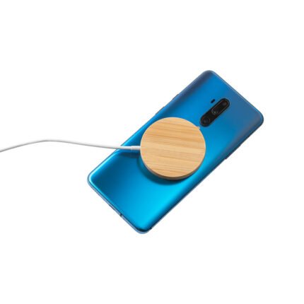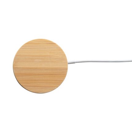 Cargador inalámbrico magnético ultrarrápido elaborado en bambú. Potencia máxima de carga inalámbrica de 15 W.Gracias a su capacidad magnética y carga inalámbrica, resulta simple sujetar el smartphone al soporte mientras se carga. Ideal para usar tanto en la oficina como de viaje, al ser portátil.Compatible con dispositivos móviles con tecnología de carga inalámbrica. Incluye cable USB-C integrado de 1 metro, y packaging: caja de papel kraft*Como el producto está fabricado con materiales naturales, el color como el resultado de la impresión pueden tener mínimas variaciones entre productos.