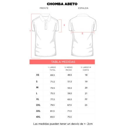 Chomba de manga corta con tiras de mangas y cuello tejido. Terminaciones con cortes laterales, confeccionada en Micropique 24/1 Peinado, 50% algodón, 50% poliéster. Recomendaciones de uso para cuidar tu prenda: Lavar a máquina a 30°. No Blanquear. No secar en máquina. Planchar suavemente, evitando el área estampada. Cardon
