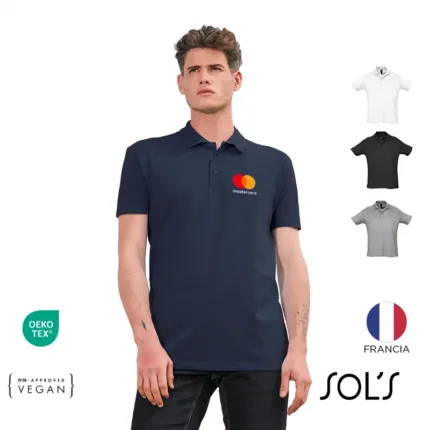 Chomba de pique con cuello de manga corta de 170g, 100% algodón peinado. Corte ajustado, cuello con tapa costura, aberturas laterales, cartera con 3 botones a tono y uno de repuesto. CERTIFICACIÓN: PETA-Approved Vegan. RECOMENDACIONES DE USO: Lavar a máquina a 30°. No blanquear. No secar en máquina. Planchar suavemente, evitando el área estampada. Sol´s.