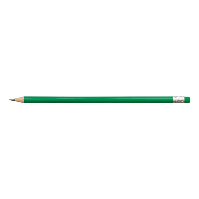 Lápiz grafito con punta, goma incorporada, cuerpo de madera y férula metálica. Cuenta con una mina de 2 mm y está fabricado en madera. Graduación HB.