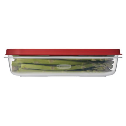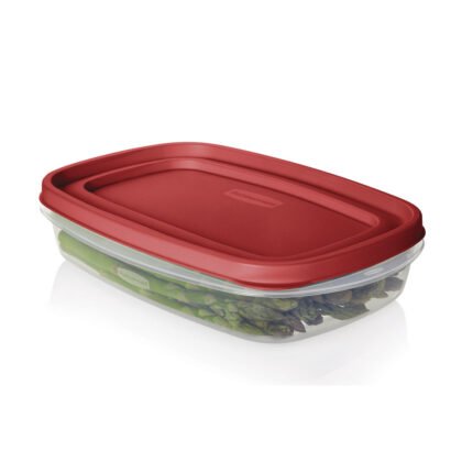 Easy Find Lids Rectangular 1.3L . Tapa Roja y Cuerpo Transparente – Contenedor especialmente desarrollado por Rubbermaid – Sistema Guarda Fácil evita extraviar las tapas – Las tapas se ajustan a las bases y a otras tapas para un fácil almacenamiento. – Base Super-Clarified permite ver fácilmente los contenidos – Paredes de contenedores gruesas y duraderas para uso diario – Apto para microondas, congelador y lavavajillas. – Capacidad: 1.3L – Bases y tapas libres de BPA, y aptas para microondas, lavavajillas y congelador.