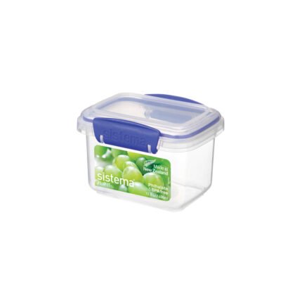Contenedor Sistema Klip It 400ml rectangular – transparente con detalles en azul 1540ZS – Contenedor desarrollado especialmente por Sistema – Sistema Klip It, dos clips en los laterales hacen que el bloqueo sea fácil y seguro – El sello interno flexible y los clips de bloqueo hacen que los alimentos permanezcan frescos por más tiempo – Sistema compacto de almacenamiento apilable ahorran espacio de almacenamiento – Su forma rectangular lo vuelve ideal para optimizar el espacio de heladeras, freezers y despensas – Apto para freezer, lavavajillas (estante superior) y microondas (sin tapa) – Capacidad 400ml – BPA free – Hecho en Nueva Zelanda