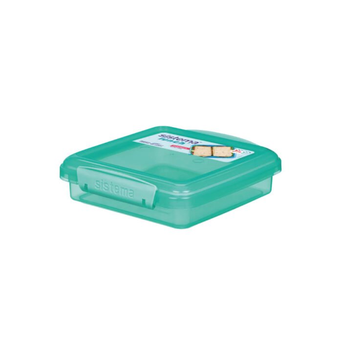 Contenedor Sistema Lunch Sandwich color Celeste de 450ml, su tamaño rectangular es ideal para llevar de almuerzo sandwichs – Contenedor desarrollado especialmente por Sistema – Sistema Klip It, dos clips en los laterales hacen que el bloqueo sea fácil y seguro – El sello interno flexible y los clips de bloqueo hacen que los alimentos permanezcan frescos por más tiempo – Sistema compacto de almacenamiento apilable ahorran espacio de almacenamiento – Apto para freezer, lavavajillas (estante superior) y microondas (sin tapa) – Capacidad 450ml – BPA y Ftalato free – Hecho en Nueva Zelanda 2108837