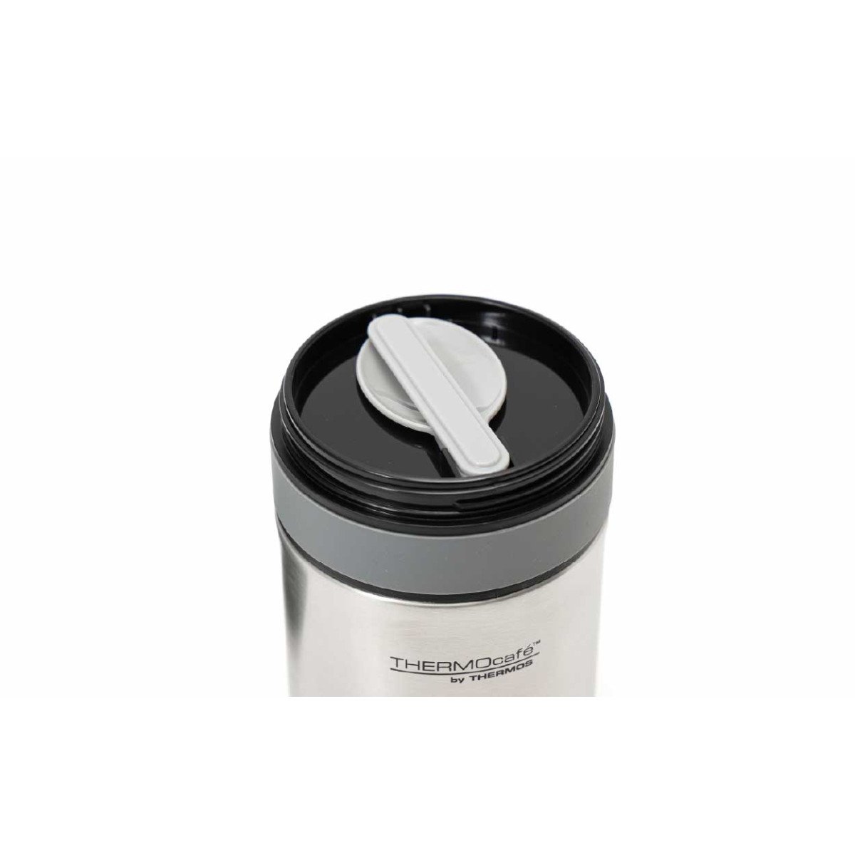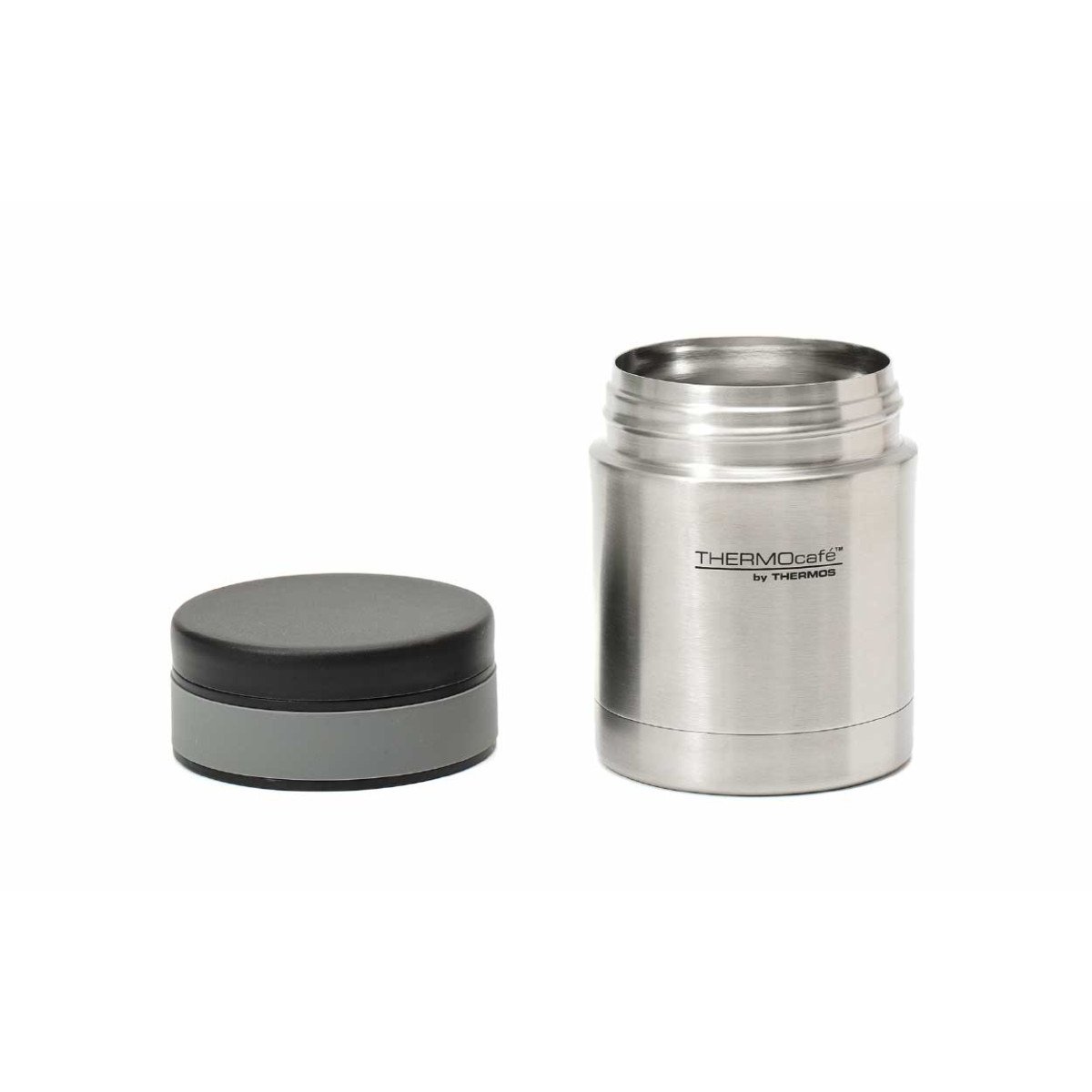 Contenedor térmico de doble pared de acero inoxidable, con aislamiento al vacío. Mantiene su contenido tanto caliente como frío, según la necesidad. Tapa a rosca, a prueba de derrames. Incluye la cuchara de plástico reutilizable en el interior. Capacidad: 350 ml.