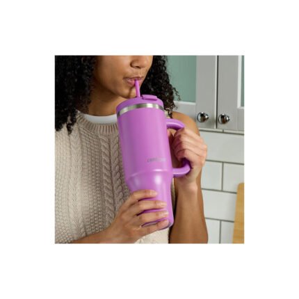 Vaso térmico para beber con o sin sorbete. Mango para tomar fácilmente estando en movimiento. Tapa multifunción a prueba de fugas (cuando la tapa está cerrada y no tiene sorbete).Incluye sorbete. Libre de BPA.Fácil de transportar. Apto para portavaso del auto.Fácil de limpiar. Apto lavavajillas.Material: Acero inoxidable con aislamiento al vacío. Mantiene tus bebidas frías hasta 29hs.Capacidad: 1180ml. / 40oz.