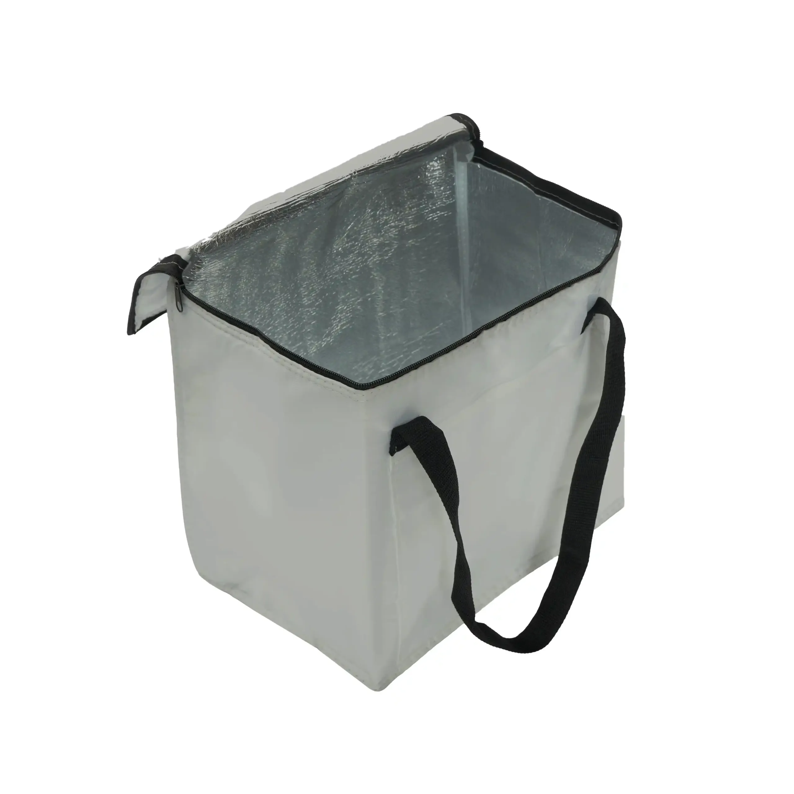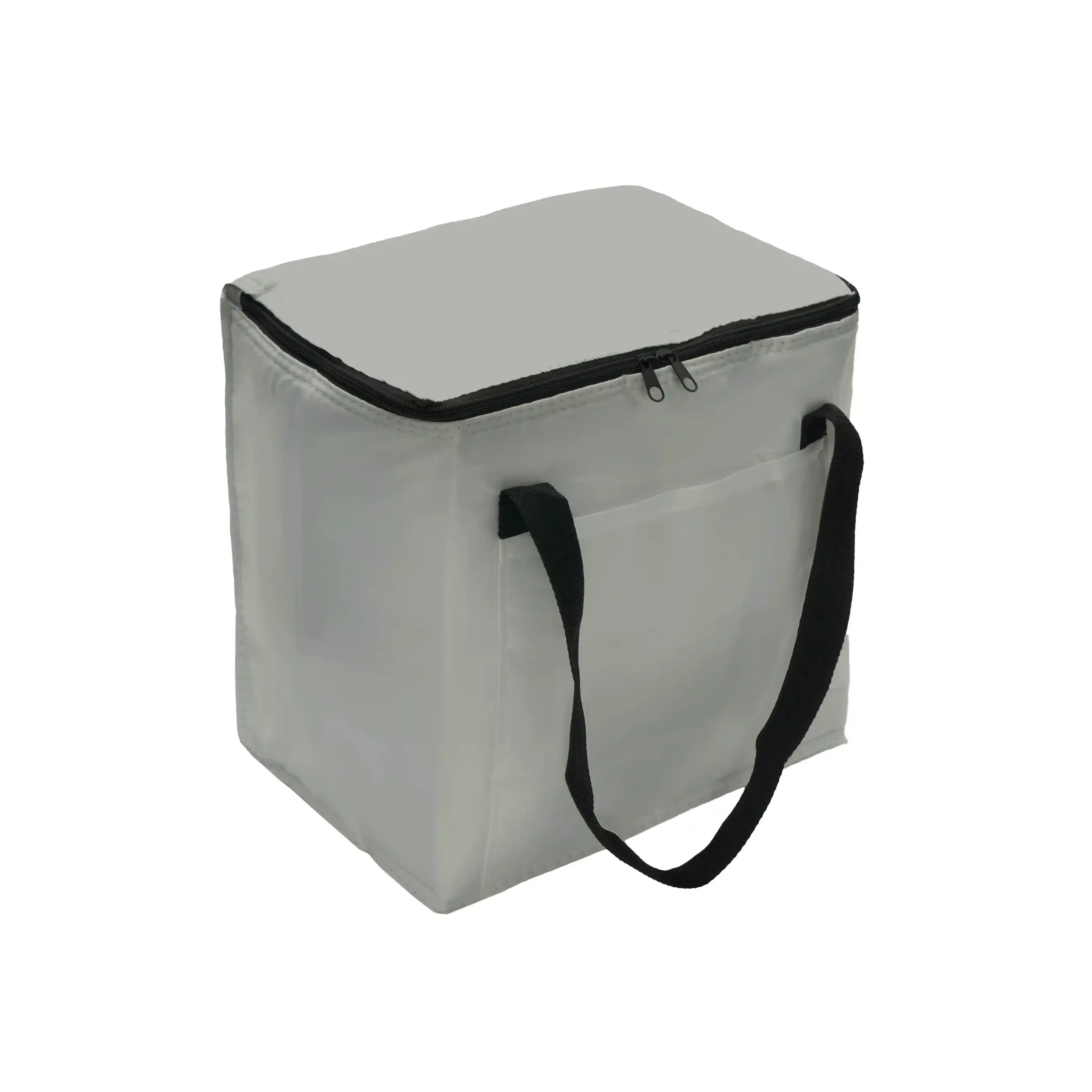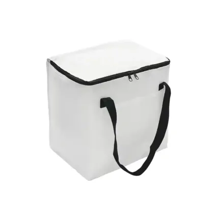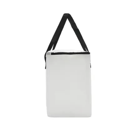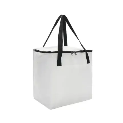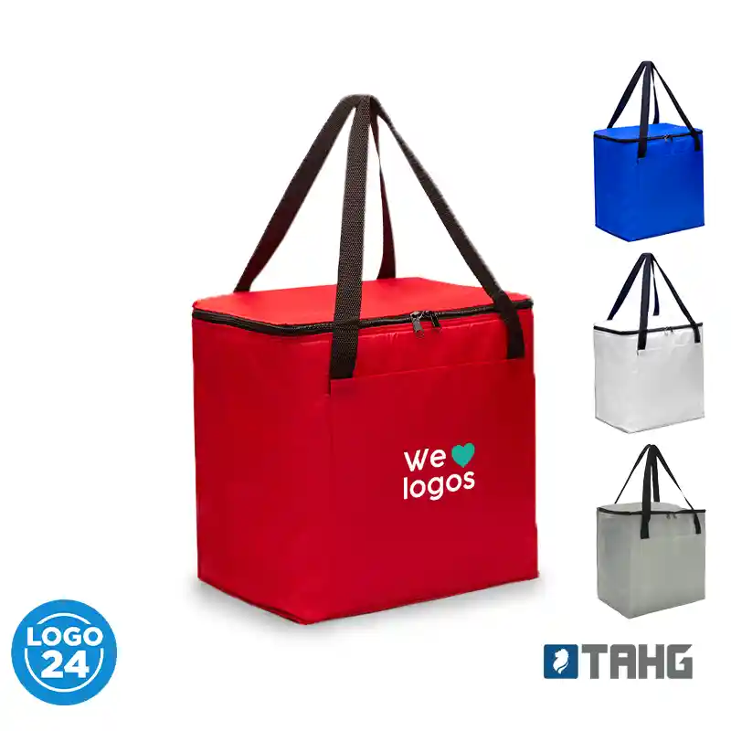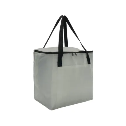 Realizado en Polyester. Interior térmico en aluminium foil. Doble cierre. Bolsillo frontal.