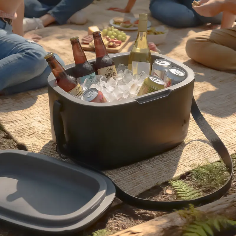 Conservadora rígida de 11.5 litros hecha de PE, EPS y PP. Cuenta con una tapa superior removible, correas resistentes y ganchos en color negro, lo que la hace robusta y funcional para transportar bebidas o alimentos. Es ideal para actividades al aire libre como picnic, camping, playa o días de campo, manteniendo la temperatura de los productos durante más tiempo.