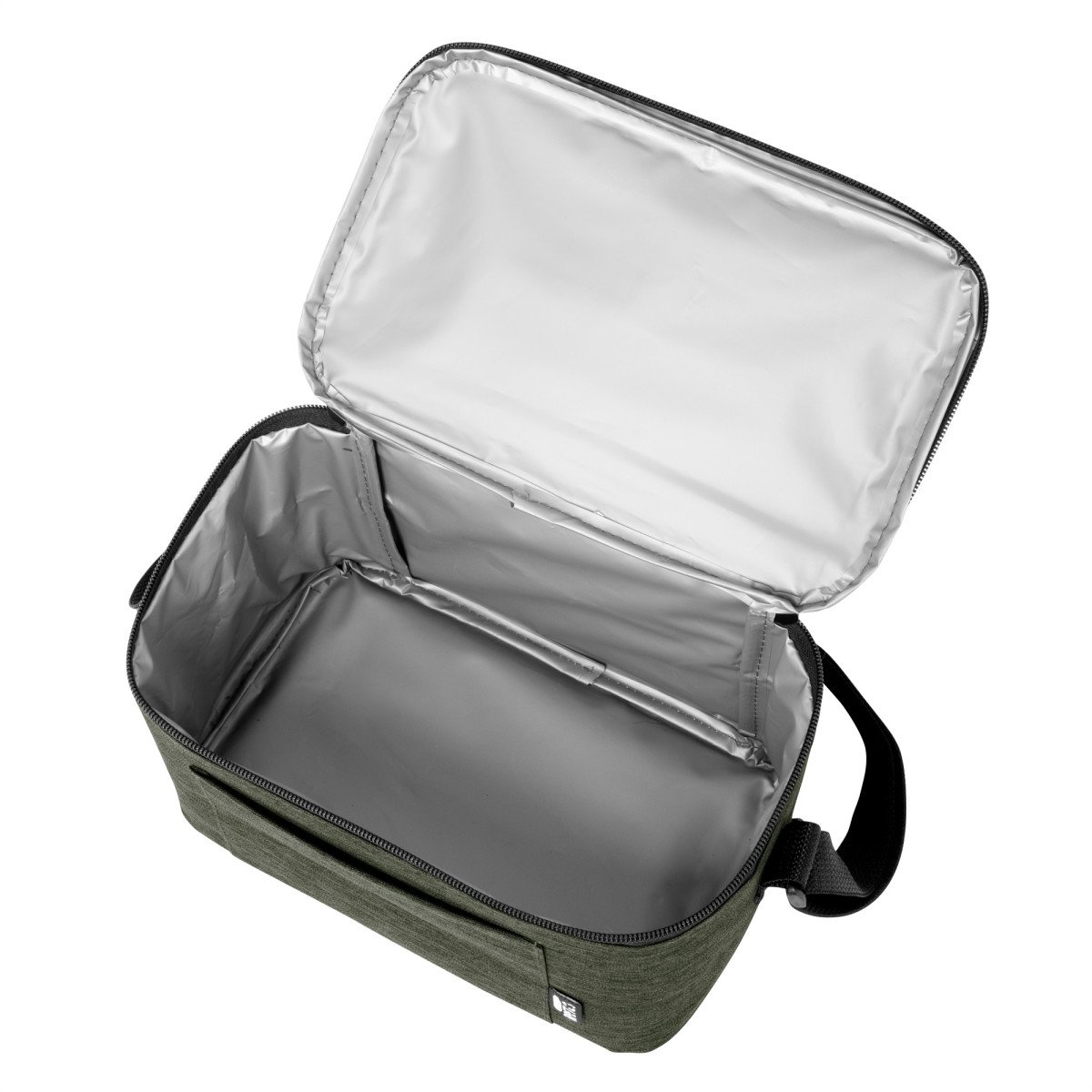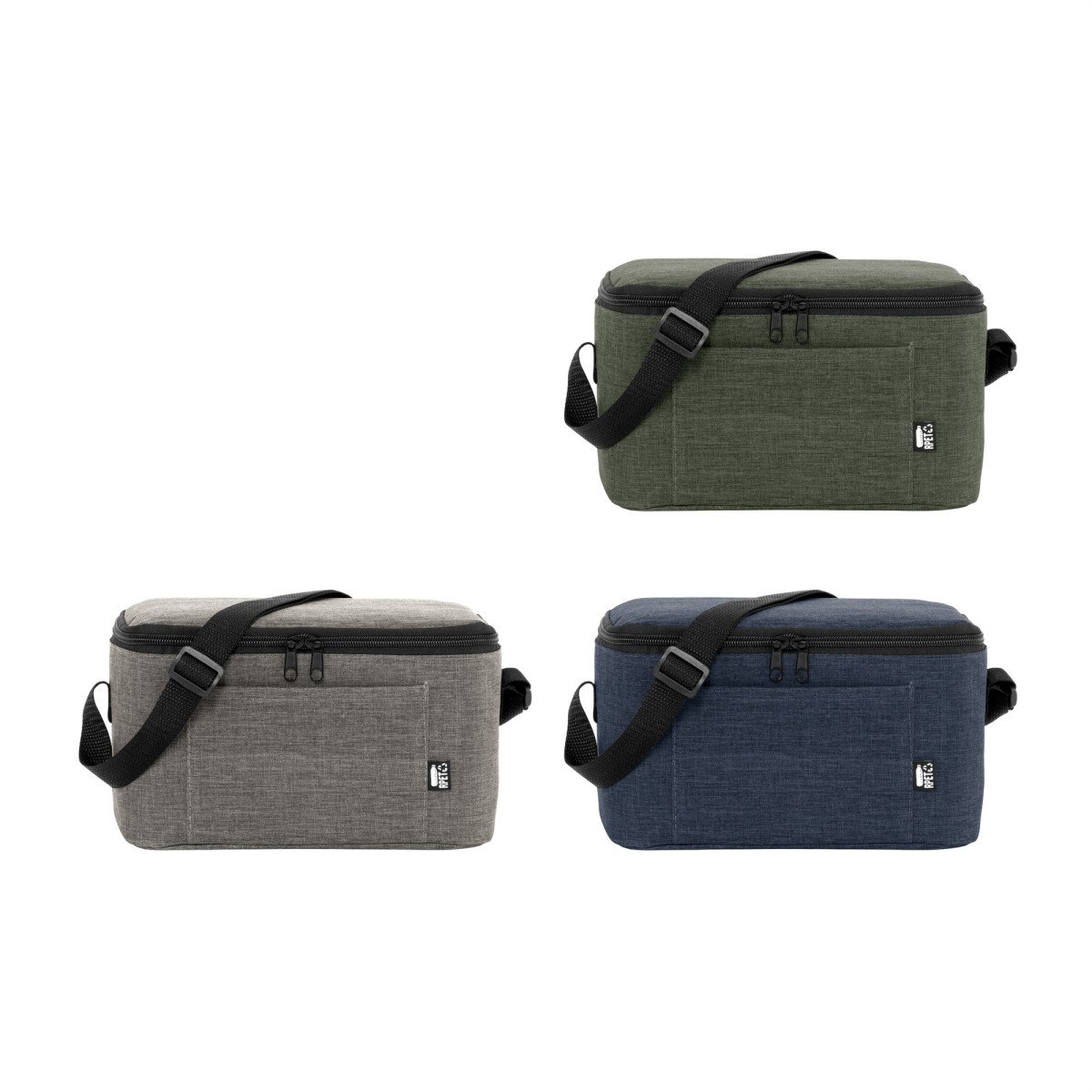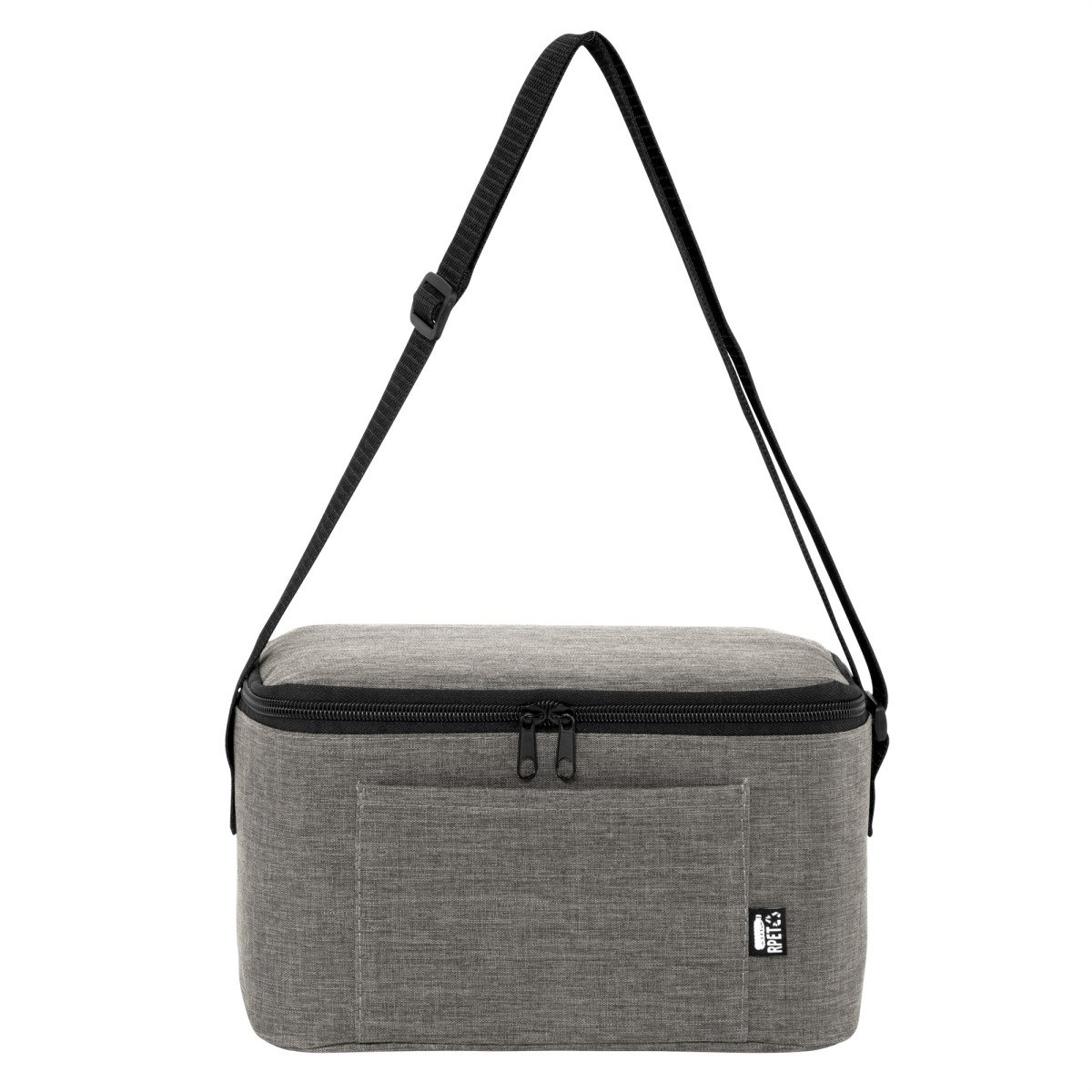 Compacto, práctico y siempre listoBolso térmico. Cierre superior bidireccional. Correa regulable con hebillas plásticas. Bolsillo frontal. Capacidad ideal para transportar hasta 6 latas.Medidas: 26 x 16 x 14 cm.