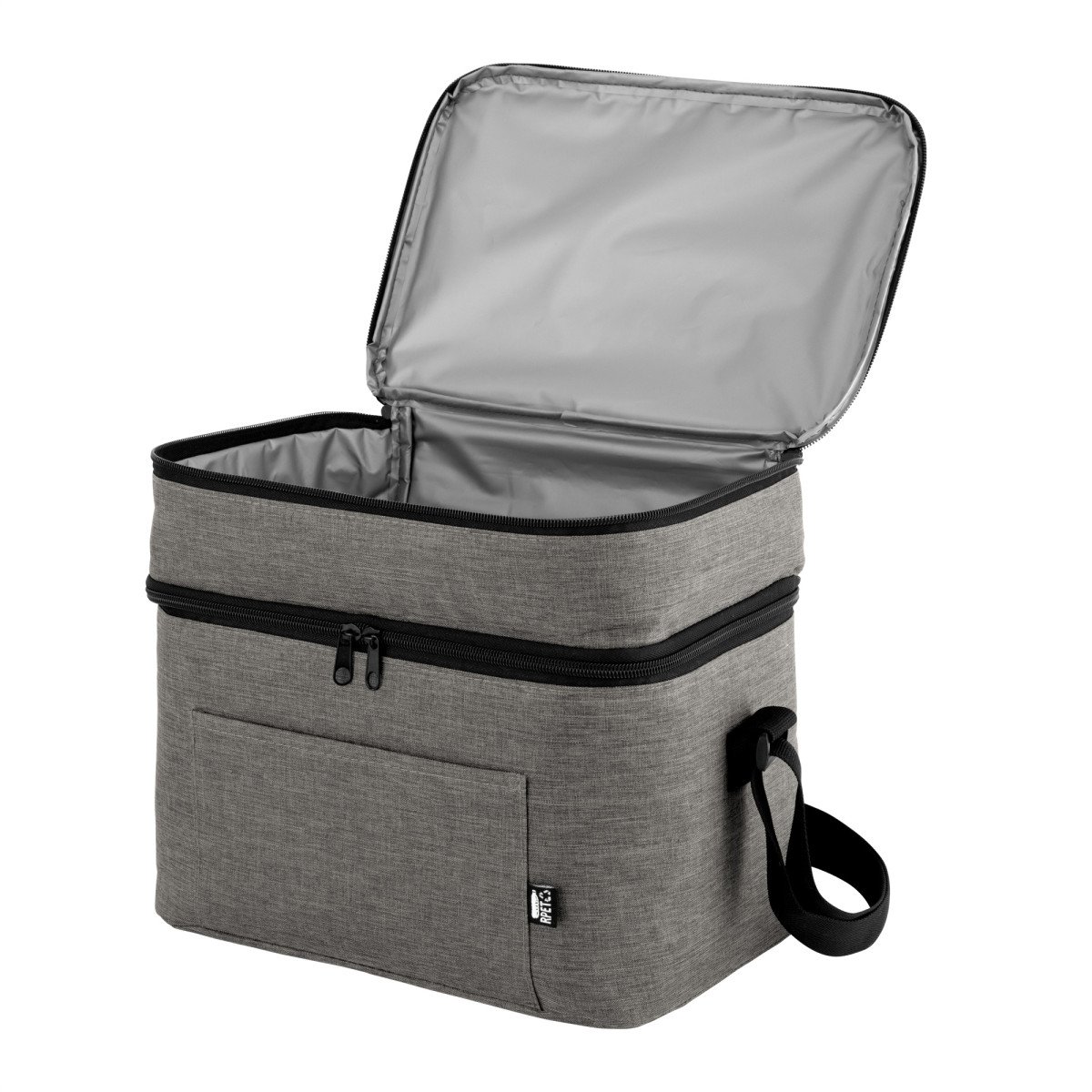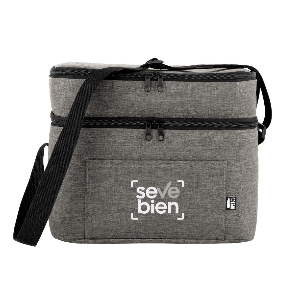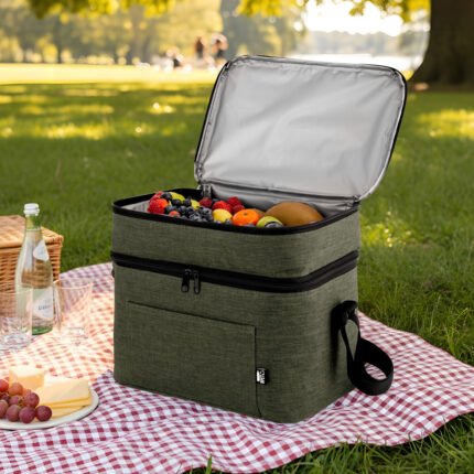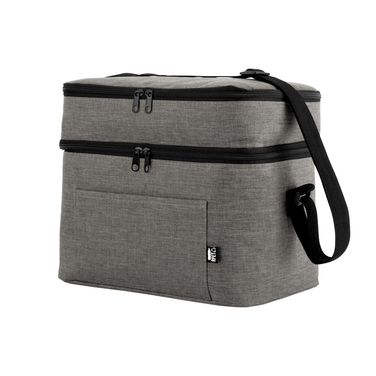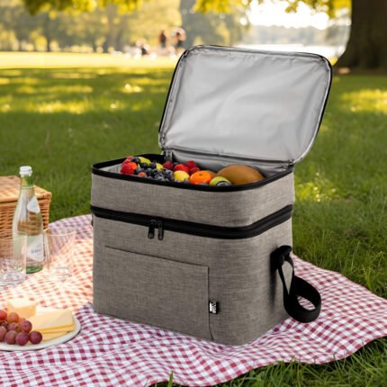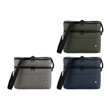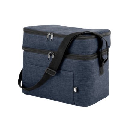 Todo frío, bien organizado.Bolso térmico de dos pisos . Cierres perimetrales bidireccionales. Correa regulable con hebillas plásticas. Bolsillo frontal. Amplio compartimento principal y compartimento superior ideal para separar recipientes con alimentos. Medidas: 30,5 x 20,5 x 24 cm. (total), 30,5 x 20,5 x 17 cm. (principal) y 30,5 x 20,5 x 7 cm. (superior)