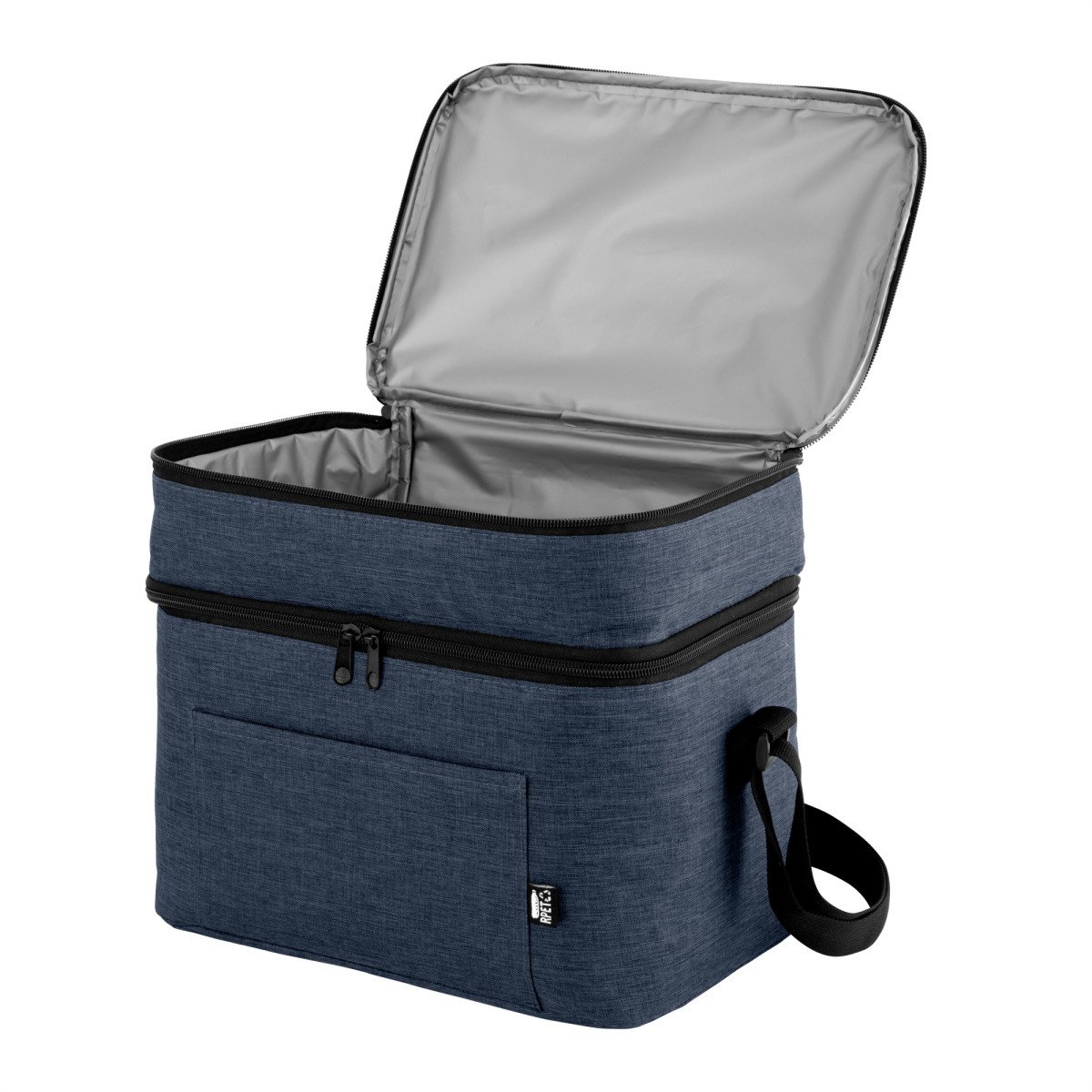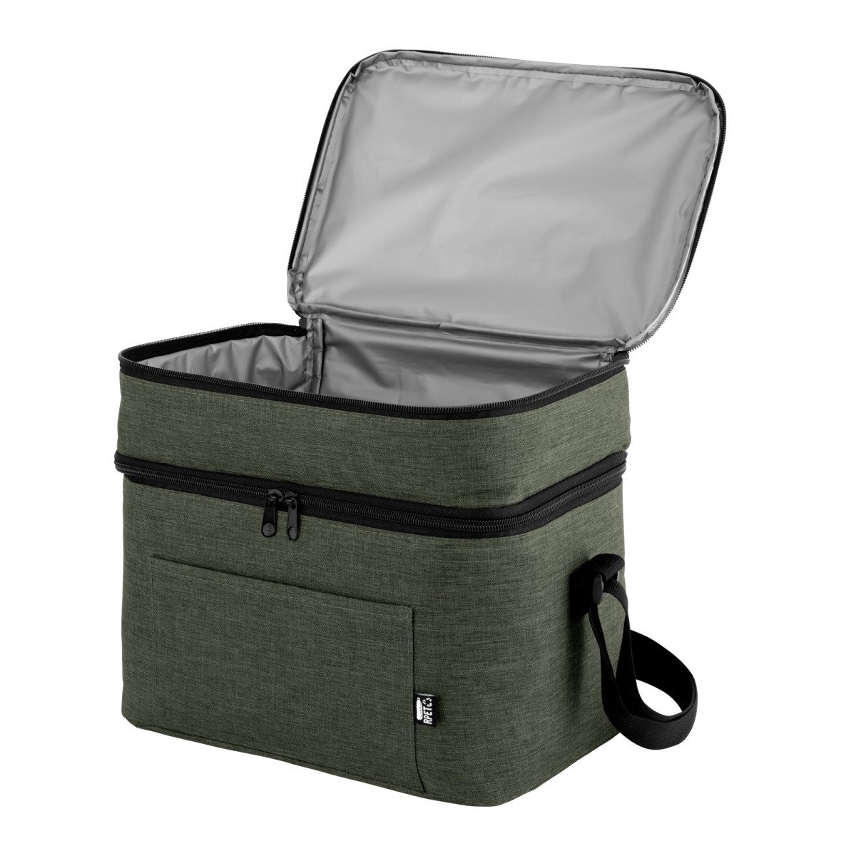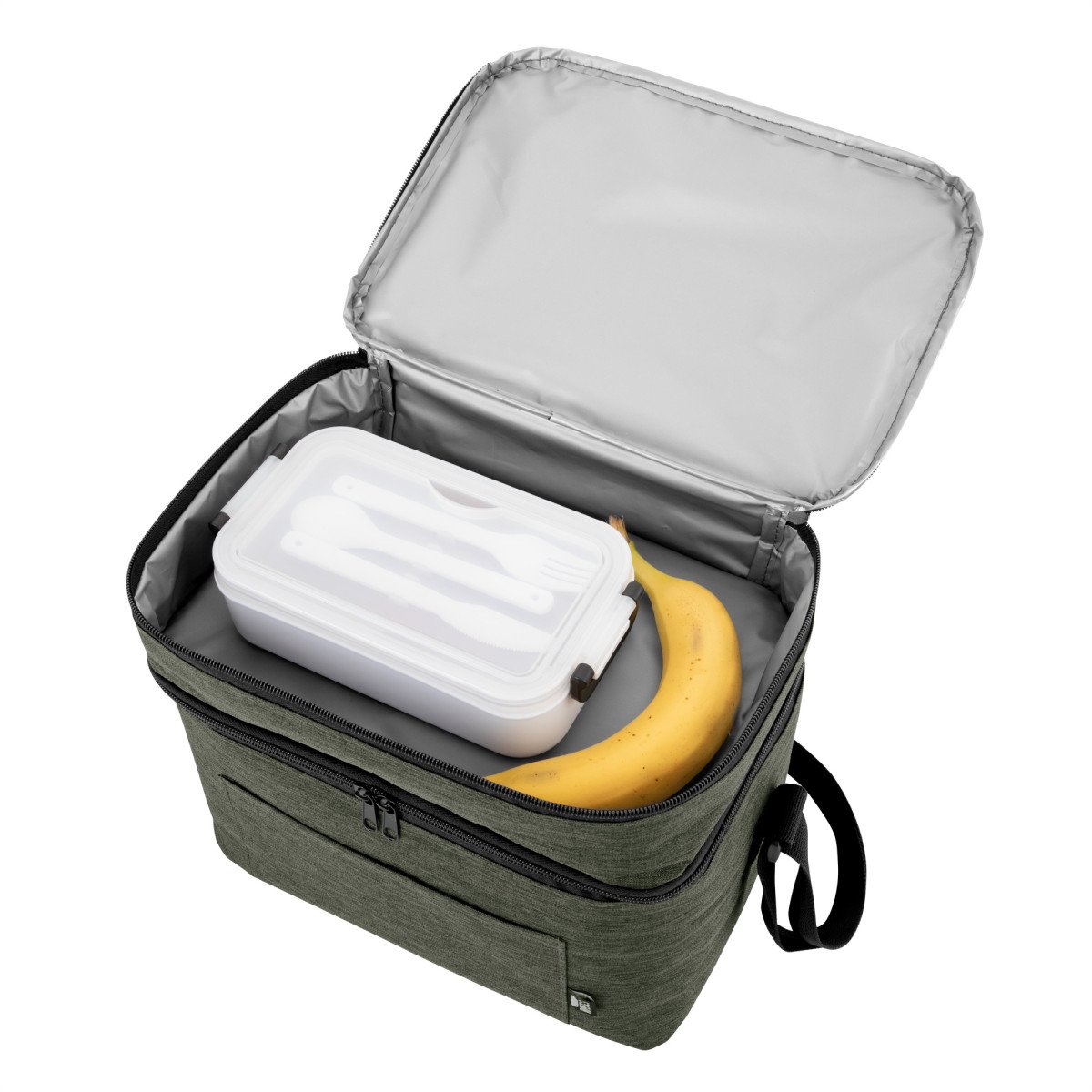 Todo frío, bien organizado.Bolso térmico de dos pisos . Cierres perimetrales bidireccionales. Correa regulable con hebillas plásticas. Bolsillo frontal. Amplio compartimento principal y compartimento superior ideal para separar recipientes con alimentos. Medidas: 30,5 x 20,5 x 24 cm. (total), 30,5 x 20,5 x 17 cm. (principal) y 30,5 x 20,5 x 7 cm. (superior)