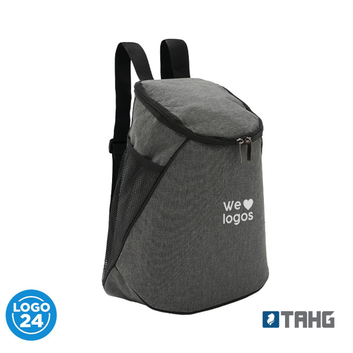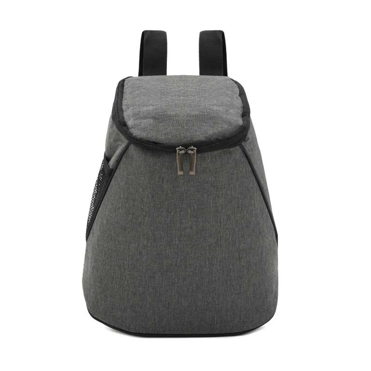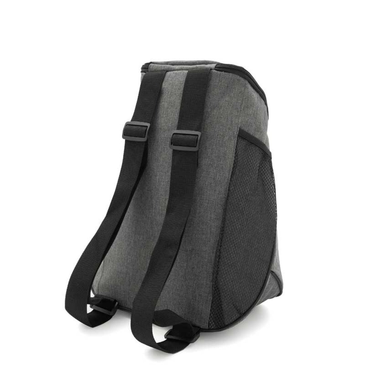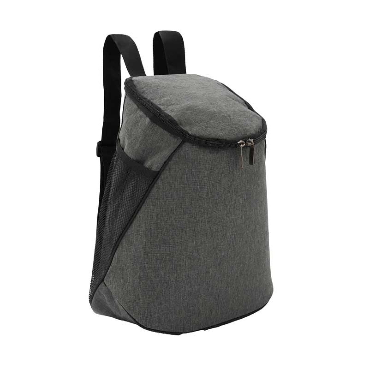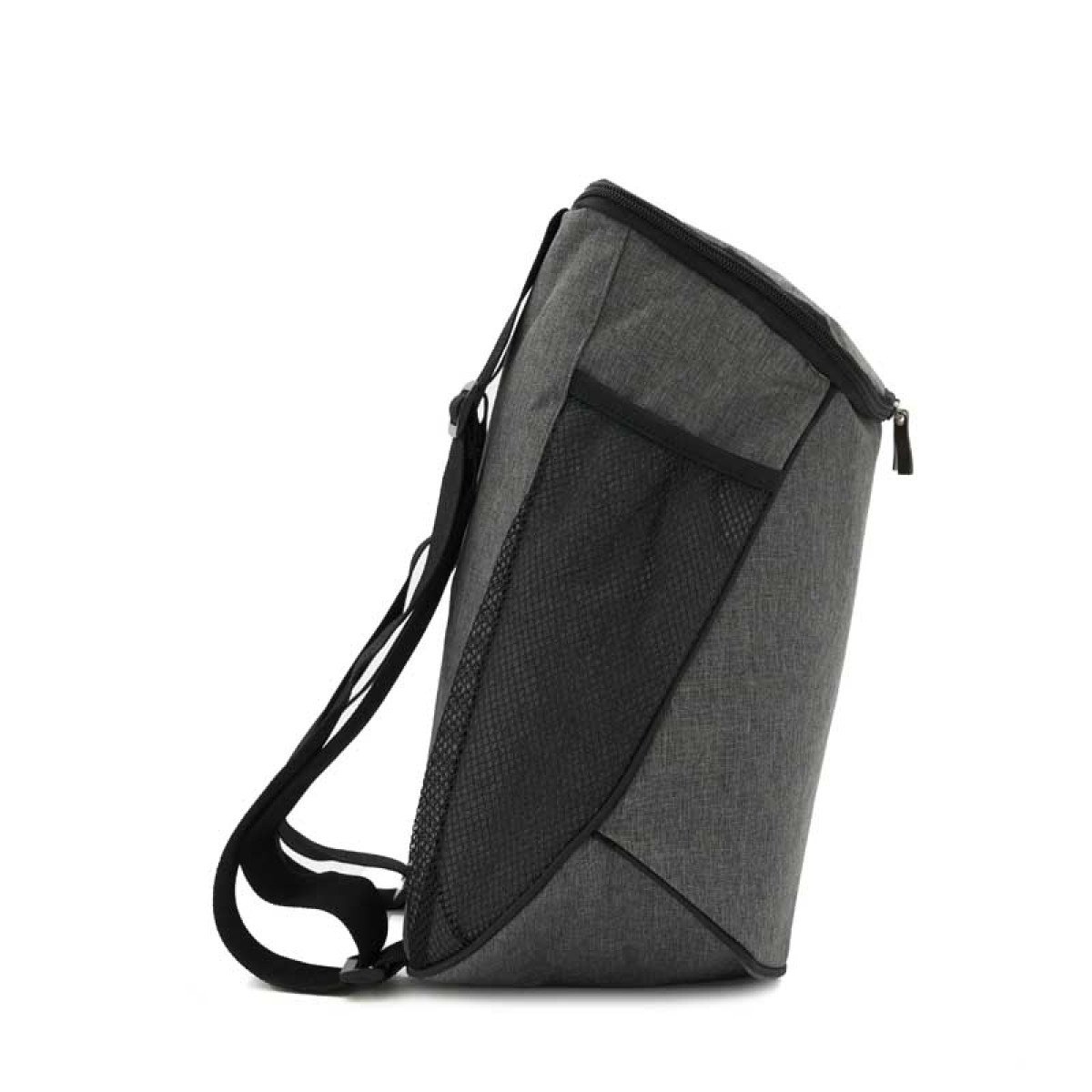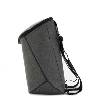 Cooler fabricado en Polycanvas en su exterior y Peva color gris con espuma 3mm en su interior. Cuenta con un compartimiento principal superior y un bolsillo con red lateral. Cierre color negro y cabezal de metal. Capacidad 12 lts. Medidas: 36 x 17 x 20 (Altura x Longitud x Ancho). Tahg.