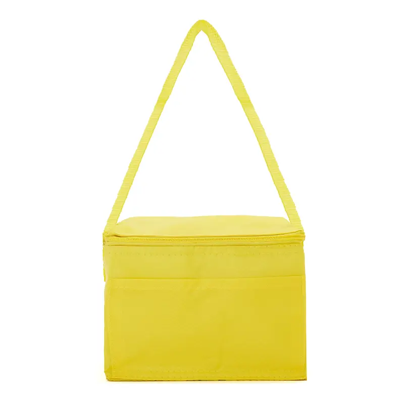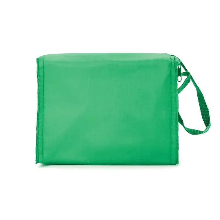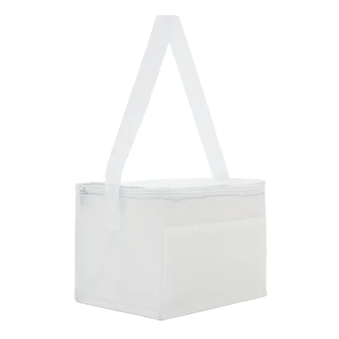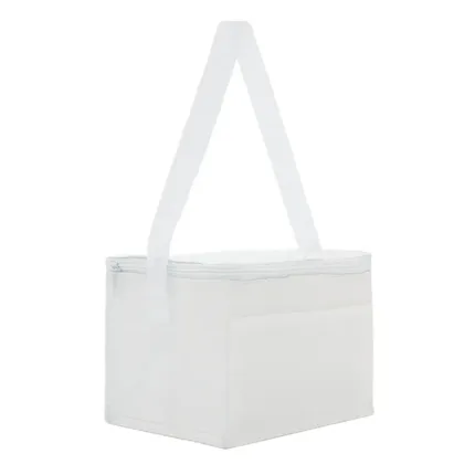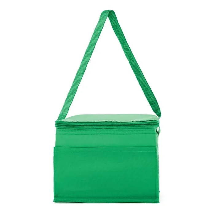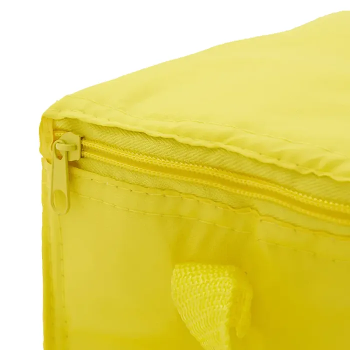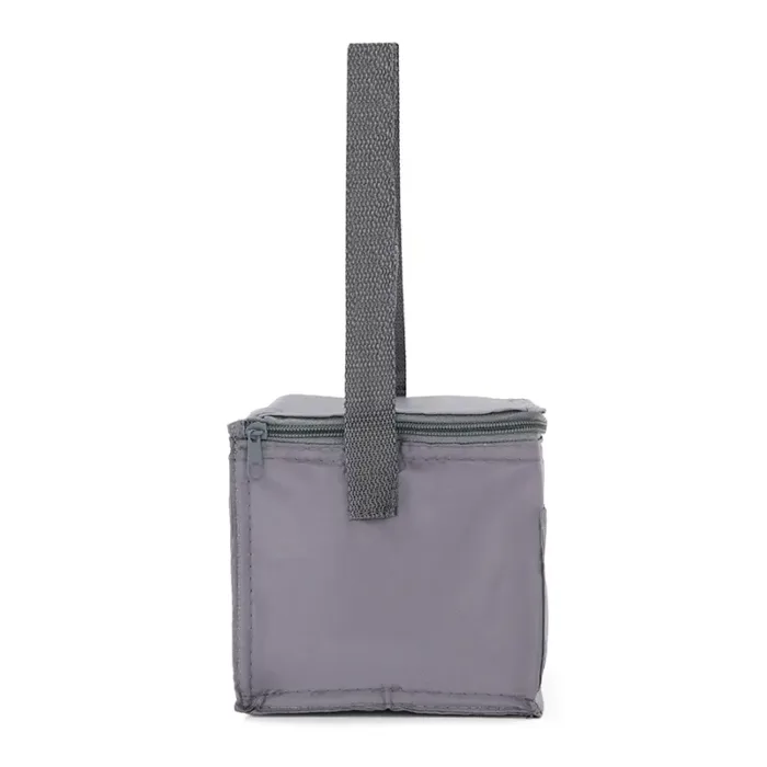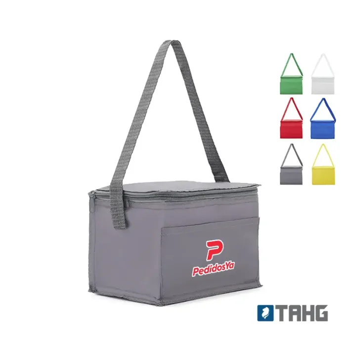 Cooler realizado en su exterior de polyester 210T y en su interior de aluminio y PE Foam 2mm. Contiene tiras para transportar, compartimiento principal superior y un bolsillo frontal. Medidas: 20,3 x 15,2 x 15,2 cm.