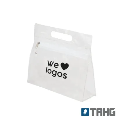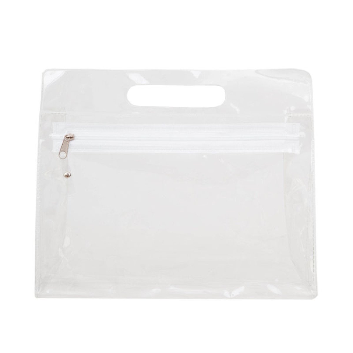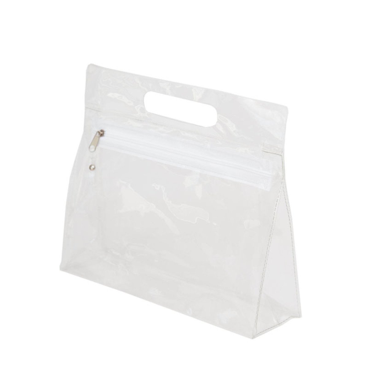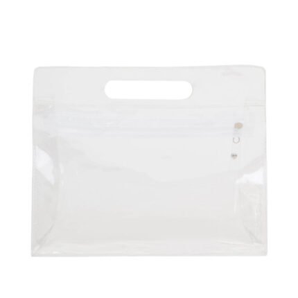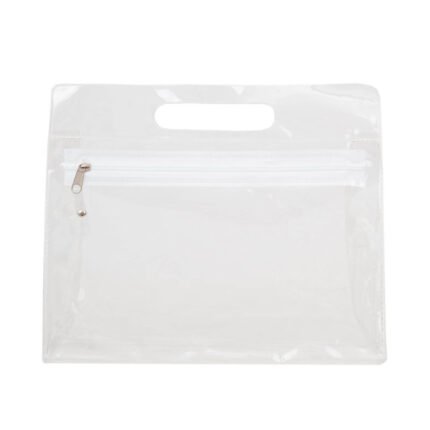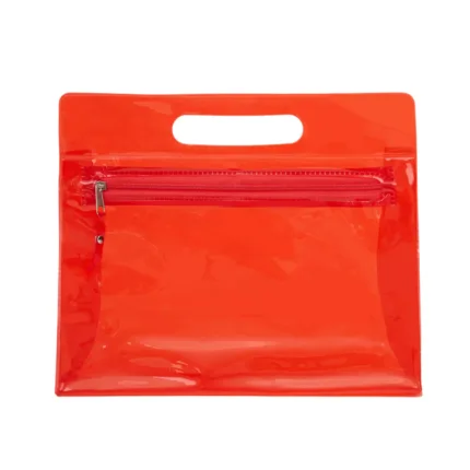 Necessaire de PVC transparente con cierre. Cuenta con fuelle, permitiendo mayor capacidad de guardado.