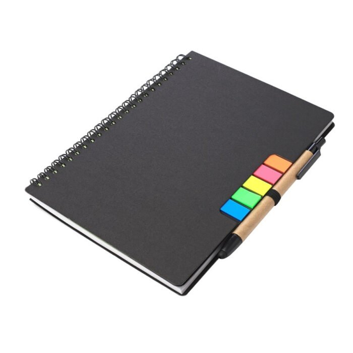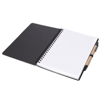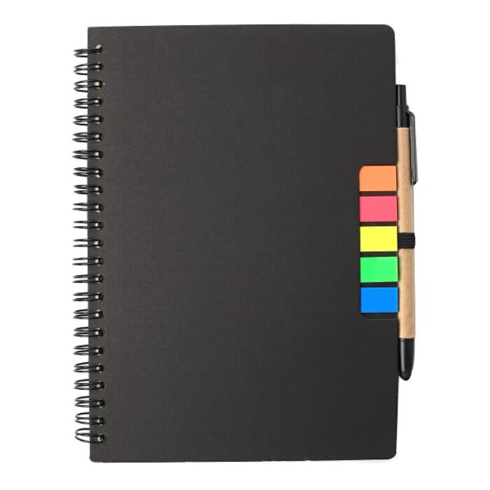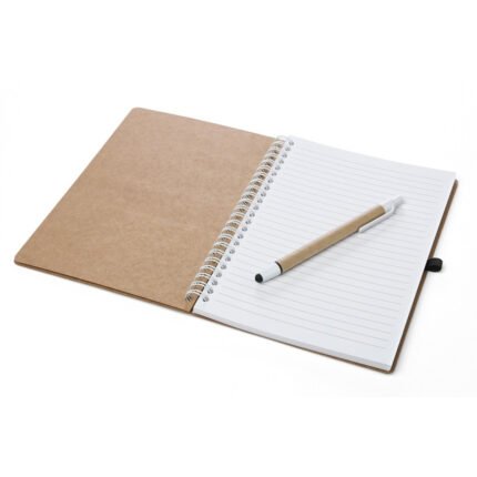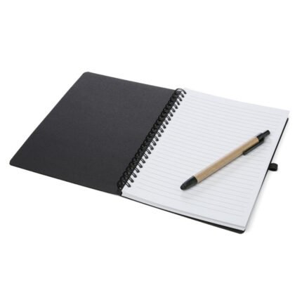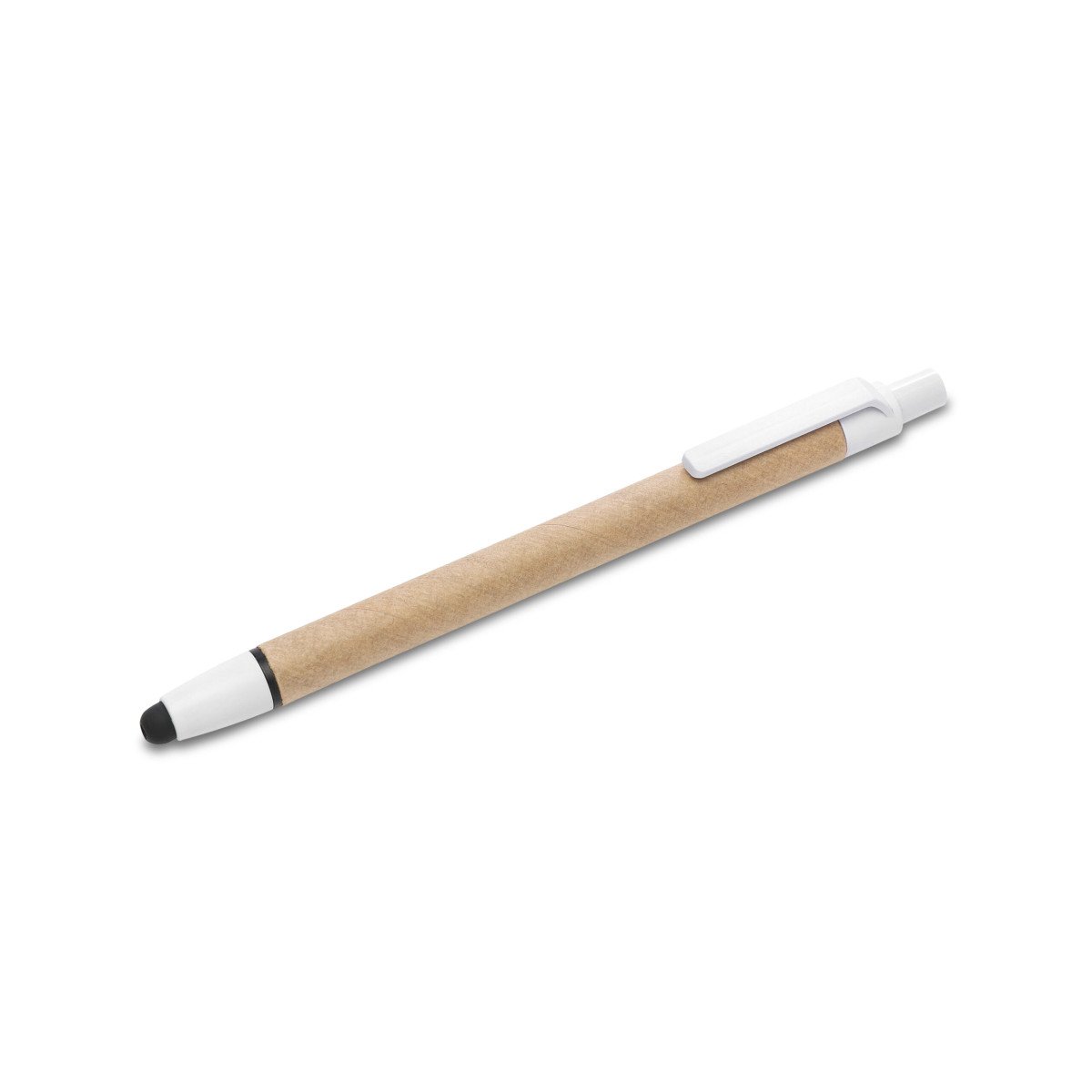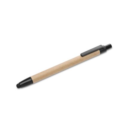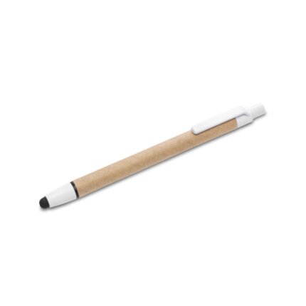 Bolígrafo Ecológico retráctil con puntera touch, incluido en elástico portabolígrafo.