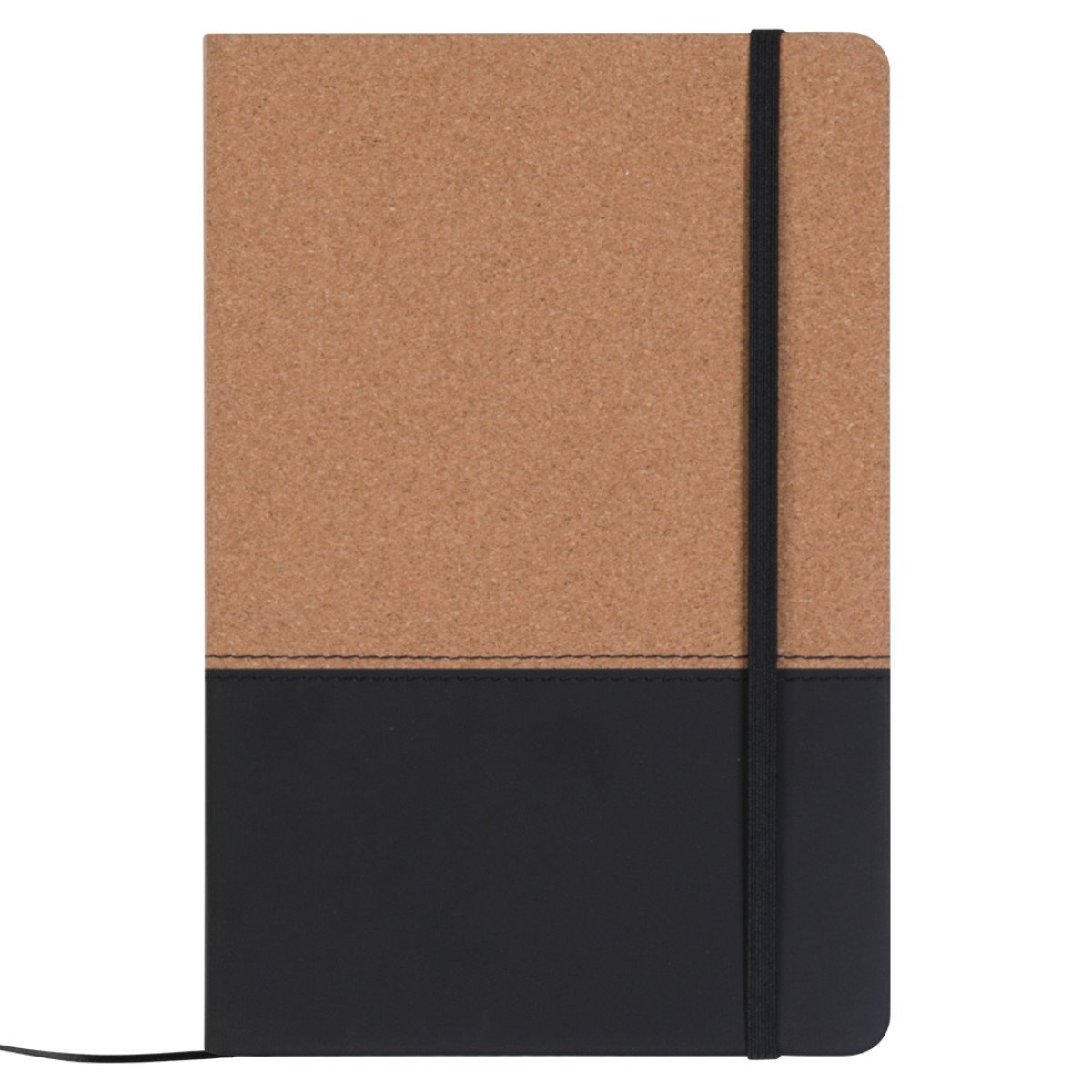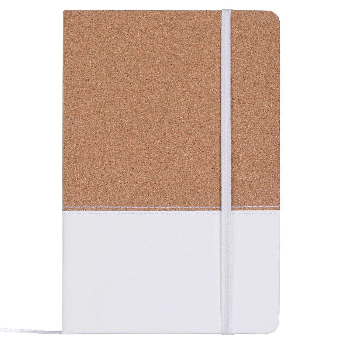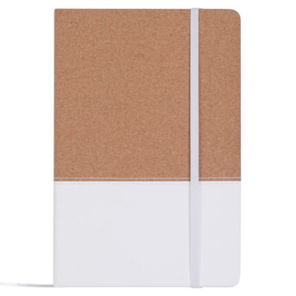 Cuaderno con tapa de corcho y PU. Cinta marca página y elástico de cierre. 80 hojas rayadas. Peso: 263 gr. Medidas: 14,5 x 22 cm.