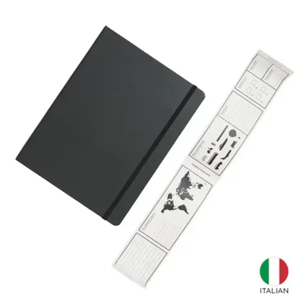 Cuenta con esquinas redondeadas, cierre elástico y una cinta marcapáginas a juego para facilitar la organización. Además, posee un práctico bolsillo interior expandible en la parte trasera, ideal para guardar notas y documentos pequeños. Su encuadernación permite una apertura de 180°, asegurando comodidad al escribir.