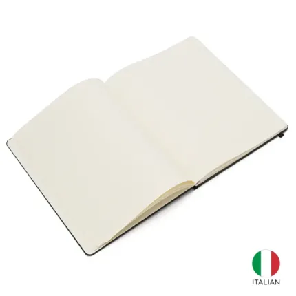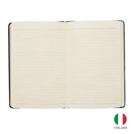 Cuaderno con tapa dura de alta calidad y 96 hojas rayadas color marfil de 70 gr libres de ácido.
