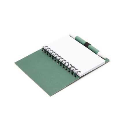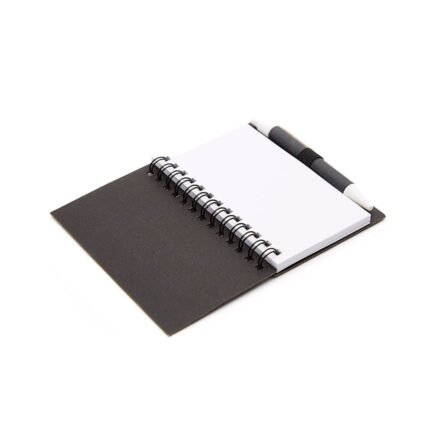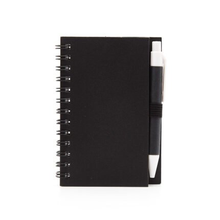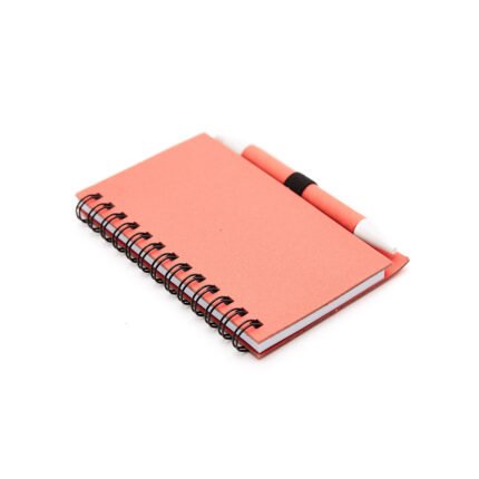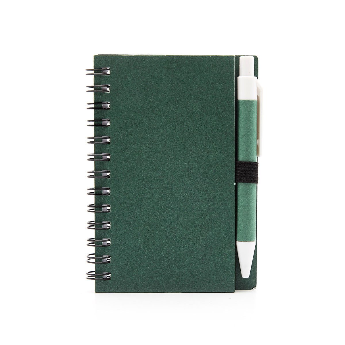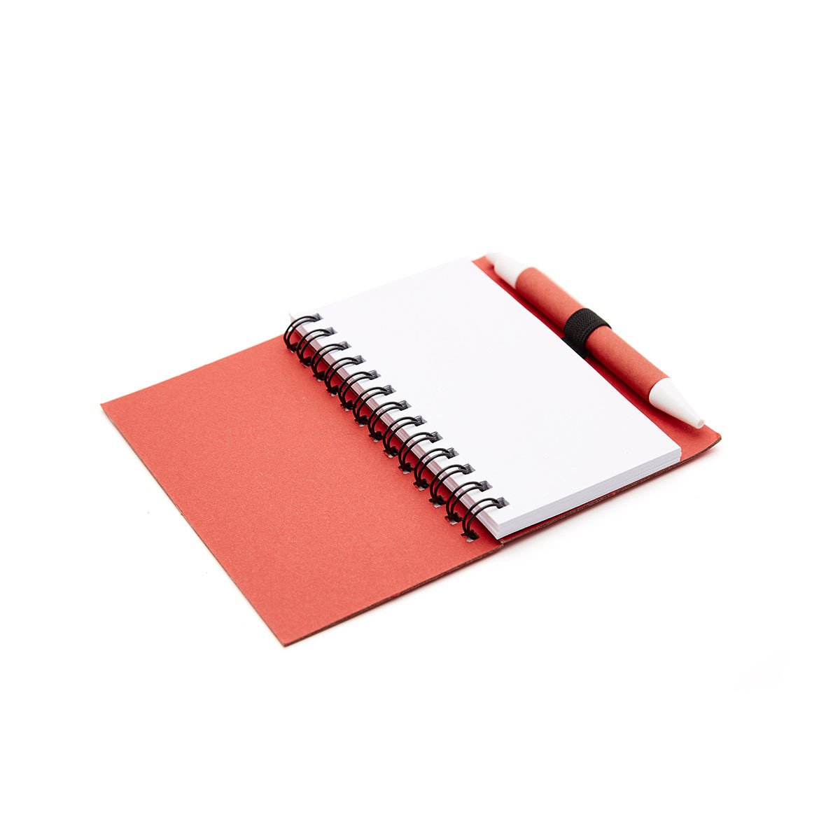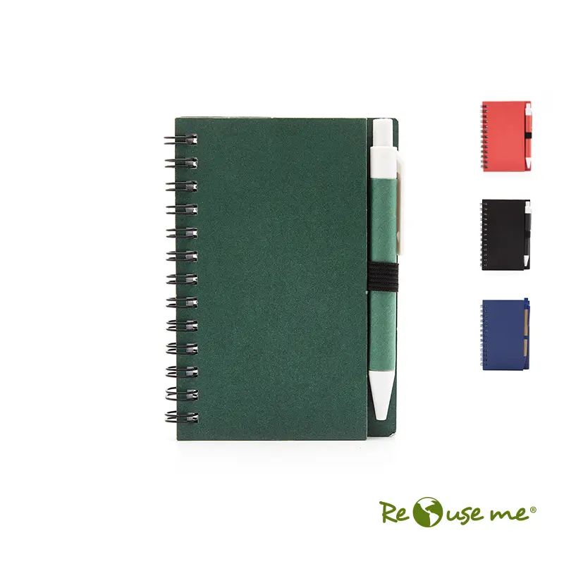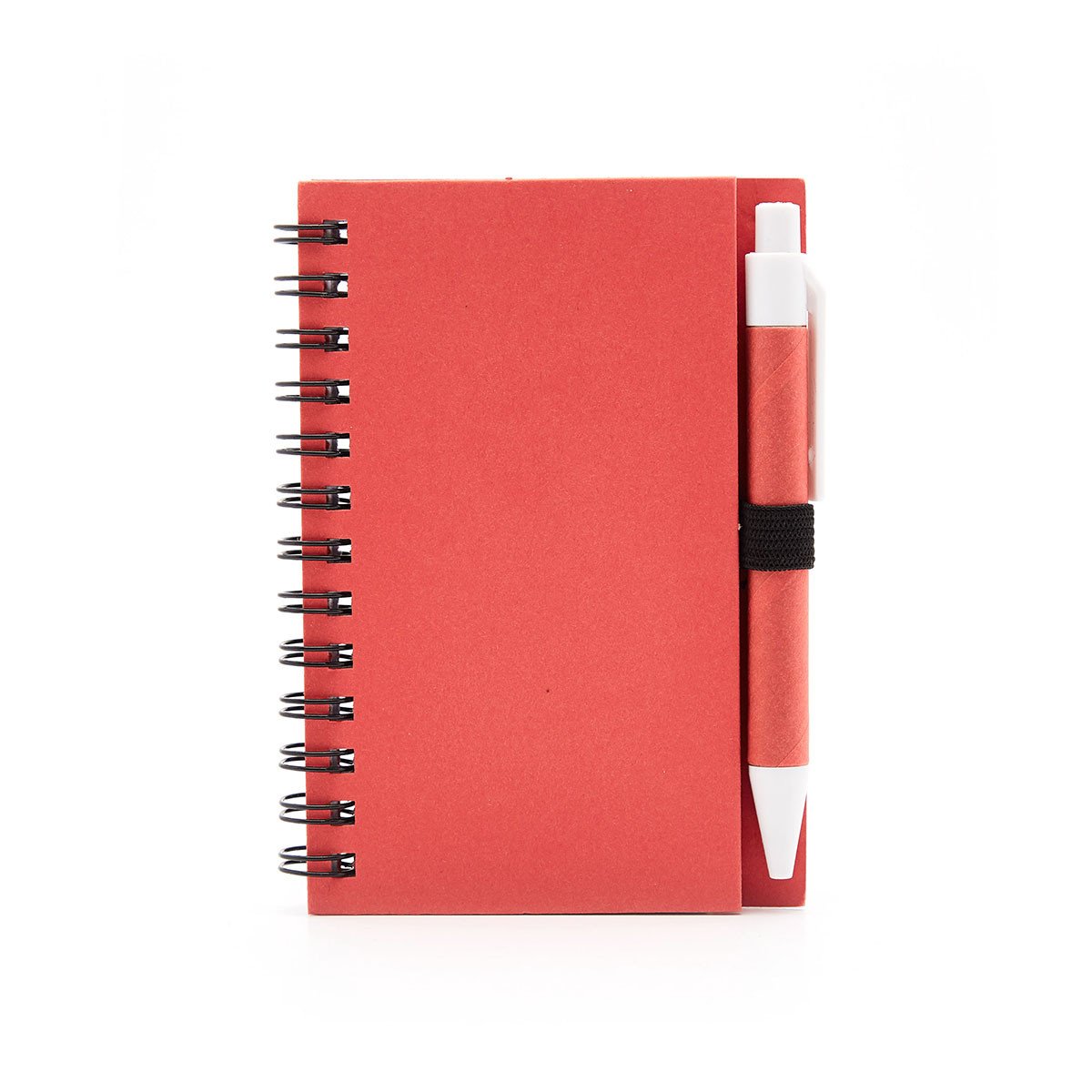 Cuaderno anillado colors tamaño A6 con 50 hojas lisas de 80 grm. Realizado con tapa dura elaborada en cartón reciclado. Incluye bolígrafo con pulsador (Tinta Negra). Medidas: 8 x 12 cm.