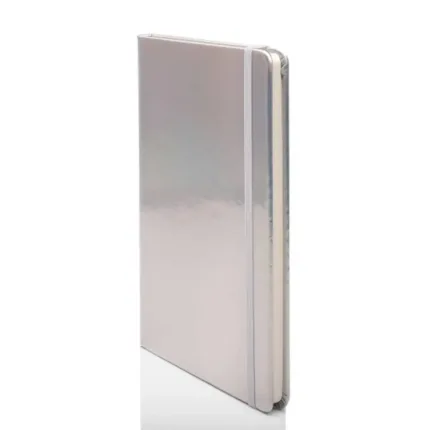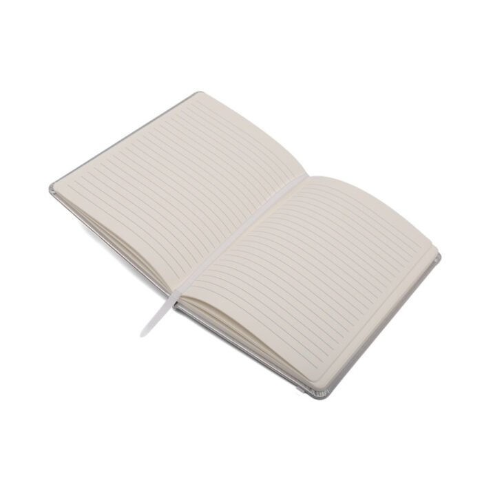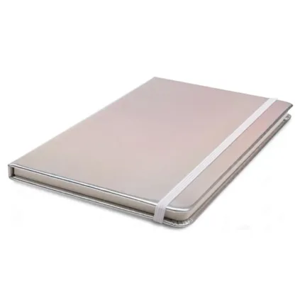 Cuaderno tapa dura forrado en eco cuero brillante.