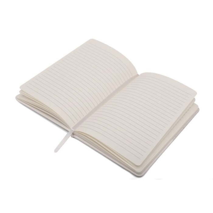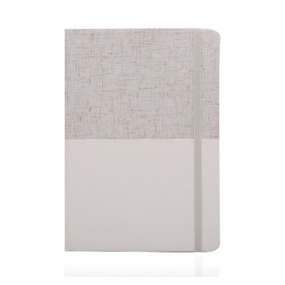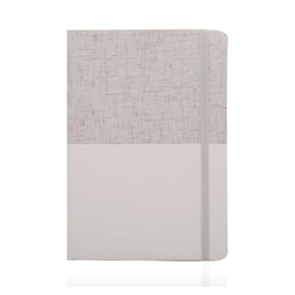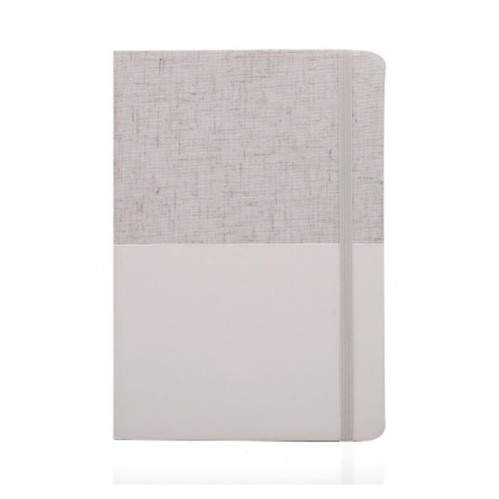 Cuaderno tapa dura forrado mitad en lino y mitad en eco cuero soft mate.