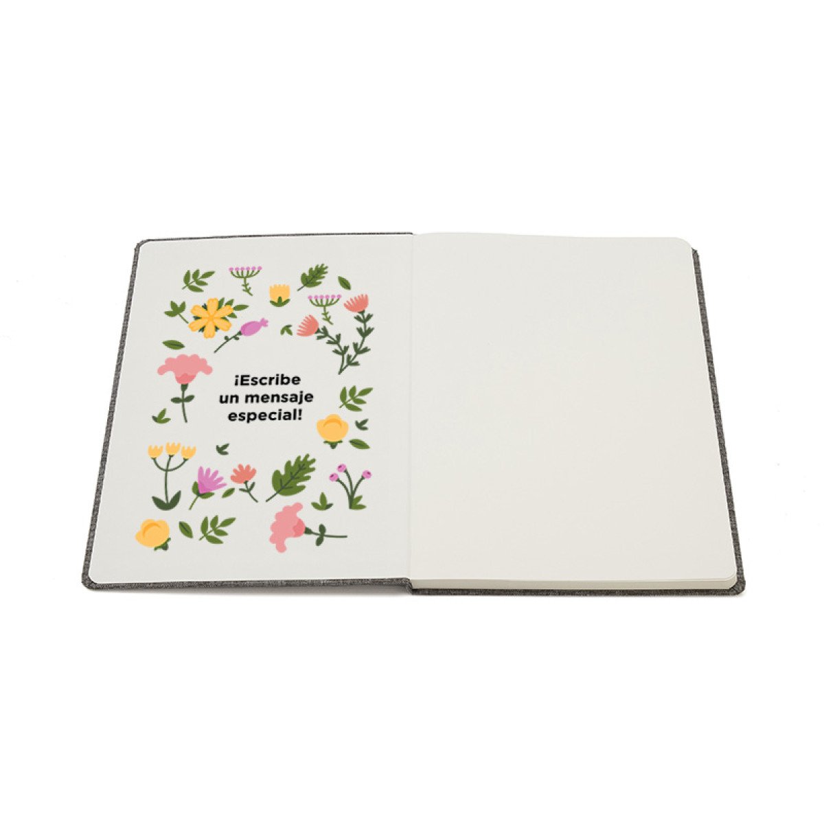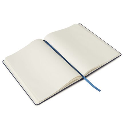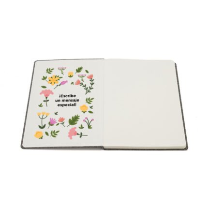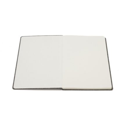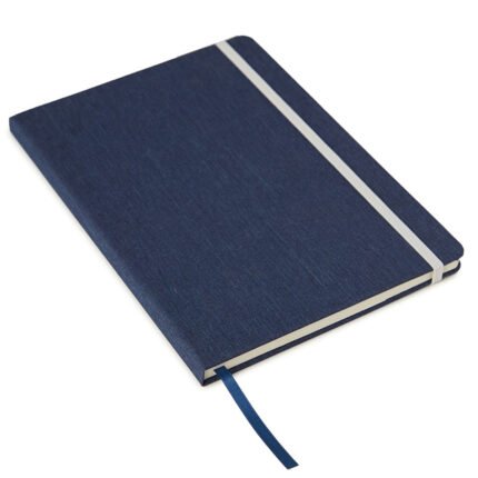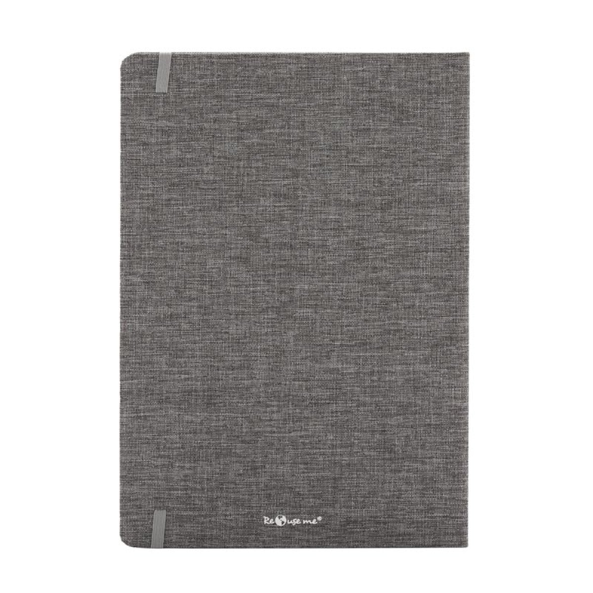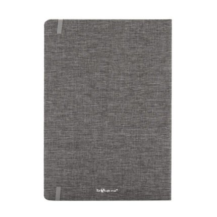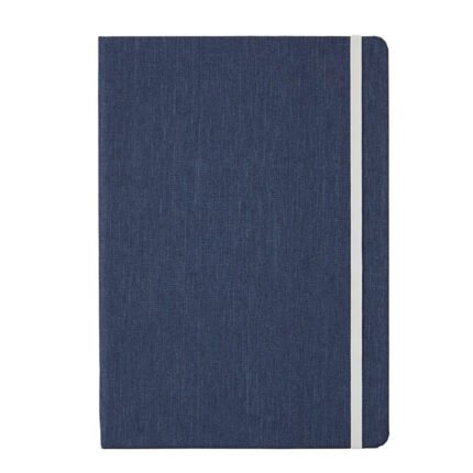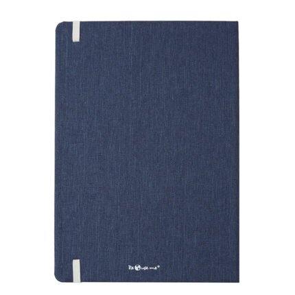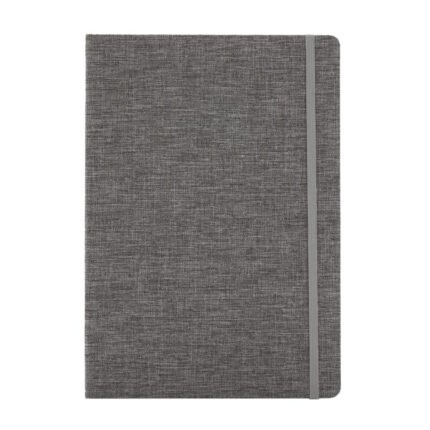Cuaderno de tapa confeccionado con material RPET, hecho con botellas de plástico reciclado. Cuenta con una cinta marcadora y un cierre elástico. 96 hojas lisas de 70g de bordes redondeados.