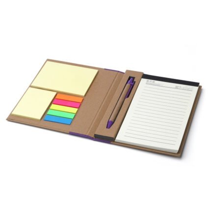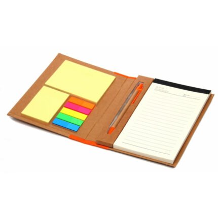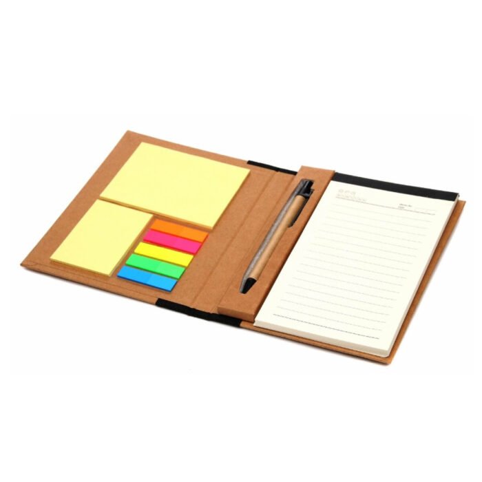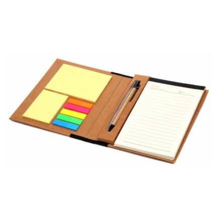 Contratapa con señaladores de 5 colores y dos blocks de hojas autoadhesivas.